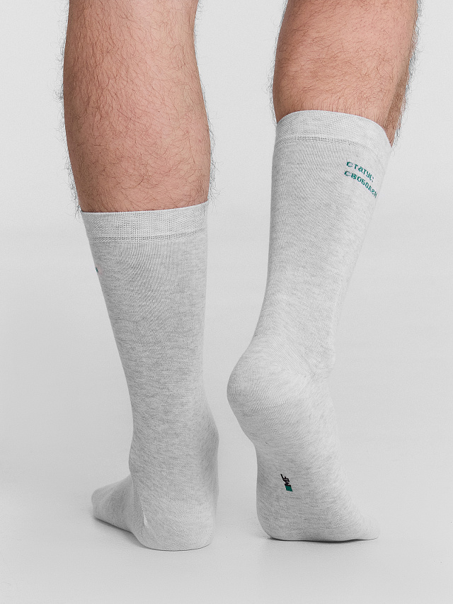 Носки мужские серые длинные с надписью "Статус: свободен"