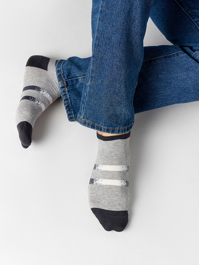 Короткие носки идеально подойдут под кроссовки, кеды или туфли. Универсальный серый цвет с полосками легко сочетается с разной обувью и одеждой – от спортивного стиля до casual-образов.