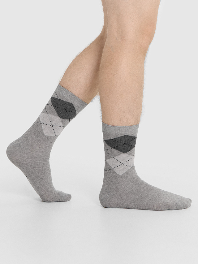 Носки мужские серые с рисунком в виде ромбов