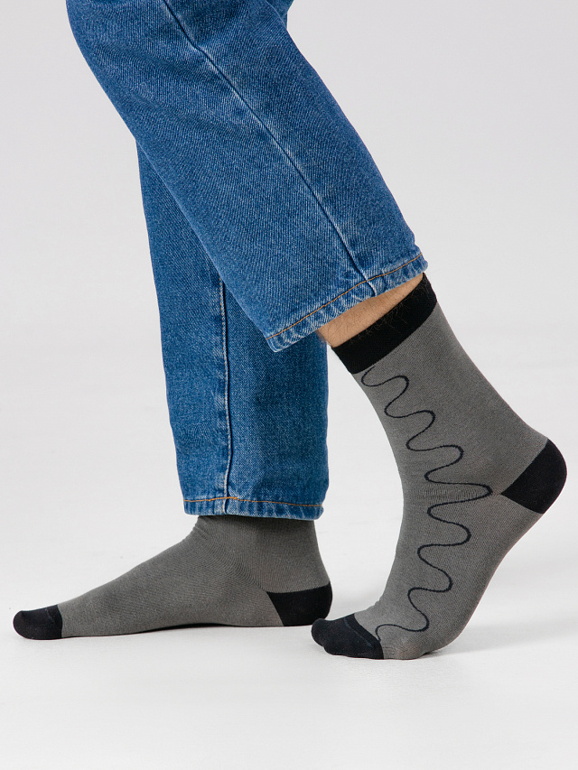 рис.3323 Мужской носок классический, с рисунком в виде волны.