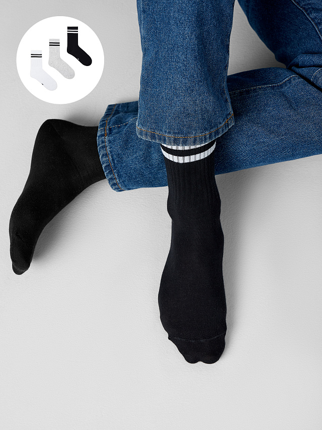 Носки мужские классические высокие (3 пары) — базовый элемент мужского гардероба. Выпонены из гребенного хлопка высочайшего качества - тонкого, прочного и долговечного. Волокна хлопка отлично пропускают воздух, позволяют коже дышать и впитывают влагу. Именно поэтому классические мужские носки дарят ощущение комфорта и свежести в течение всего дня. Благодаря небольшому количеству эластана в составе, носки мужские хорошо облегают стопу и сохраняют форму даже после множества стирок. Пятка и мысок усилены, носки будут носиться дольше. Мягкая эластичная резинка не препятствует кровообращению и равномерно распределяет давление: носки надежно держатся на ноге, не сползают. Рекомендуем эту удобную модель мужских носков!