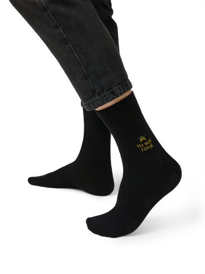 Оптовая продажа. Классические всесезонные мужские носки с рисунком-надписью "ГОРЖУСЬ ТОБОЙ" и "ТЫ МОЙ ГЕРОЙ", из высококачественного хлопка с добавлением полиамида и эластана, обеспечивающие отличную вентиляцию воздуха и хорошую циркуляцию влаги. Материал обеспечивает плотную посадку и повторяет все изгибы тела не стесняя движений, позволяет легко растягиваться и возвращаться в исходное положение. Кеттельный (плоский) шов на мыске для дополнительного комфорта. Повседневные носки с удобной посадкой, мягкой широкой резинкой которая не создает давления на ногу.