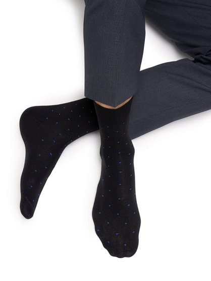 Оптовая продажа. Классические всесезонные мужские носки с рисунком в виде точек, из высококачественного хлопка с добавлением полиамида и эластана, обеспечивающие отличную вентиляцию воздуха и хорошую циркуляцию влаги. Материал обеспечивает плотную посадку и повторяет все изгибы тела не стесняя движений, позволяет легко растягиваться и возвращаться в исходное положение. Кеттельный (плоский) шов на мыске для дополнительного комфорта. Повседневные носки с удобной посадкой, мягкой широкой резинкой которая не создает давления на ногу обеспечивая комфорт.
