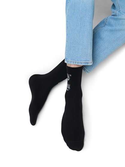 Оптовая продажа. Носки унисекс с трендовыми надписями на резинке, из высококачественного хлопка с добавлением полиамида и эластана, обеспечивающие отличную вентиляцию воздуха и хорошую циркуляцию влаги. Материал обеспечивает плотную посадку и повторяет все изгибы тела не стесняя движений, позволяет легко растягиваться и возвращаться в исходное положение. Повседневные носки с удобной посадкой, мягкой широкой резинкой. Кеттельный (плоский) шов на мыске для дополнительного комфорта. Модель подходит для использования в неформальной обстановке, ношения на прогулке.