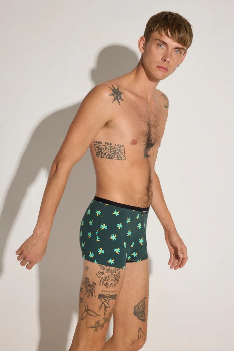 Коллекция Sockarrats. Дизайн в виде обезьяны. Комплект боксеров и носков с тропическим принтом. Эти трусы и носки, изготовленные из натурального хлопка, обладают мягкостью и воздухопроницаемостью для комфортного ношения в течение всего дня. Тропический принт добавляет нотку экзотики и веселья в ваш повседневный гардероб, перенося вас в тропический рай. Предпочитаете ли вы пальмы, цветы или тропические мотивы, этот комплект придаст вашему нижнему белью и носкам освежающий и универсальный вид.