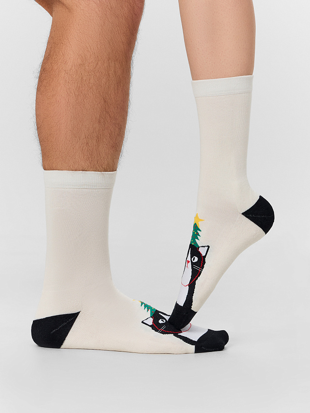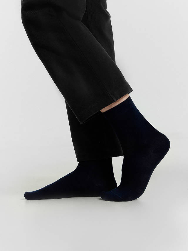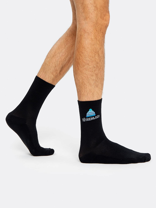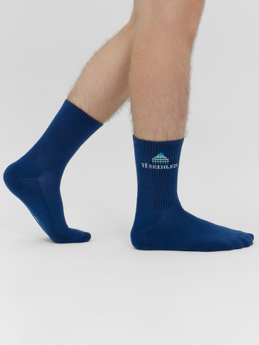 Носки мужские в джинсово-синем цвете с рисунком в виде надписи "Тепленько"