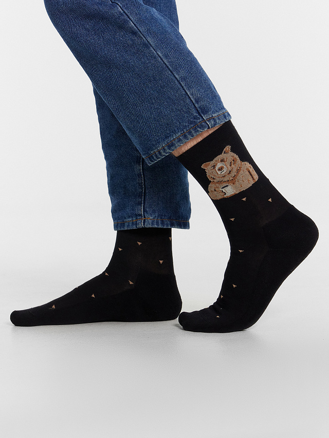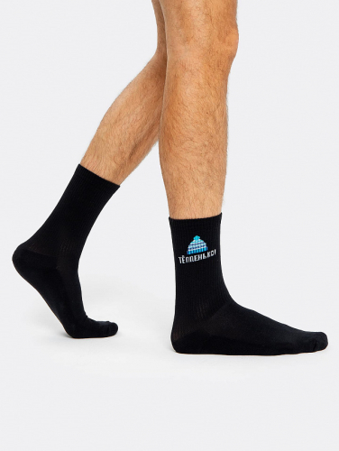 Высокие мужские носки черного с махровой стопой и забавной надписью