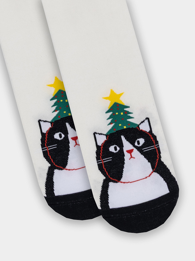 рис.3455 Носки унисекс классические с махровой стопой и рисунком в виде кота