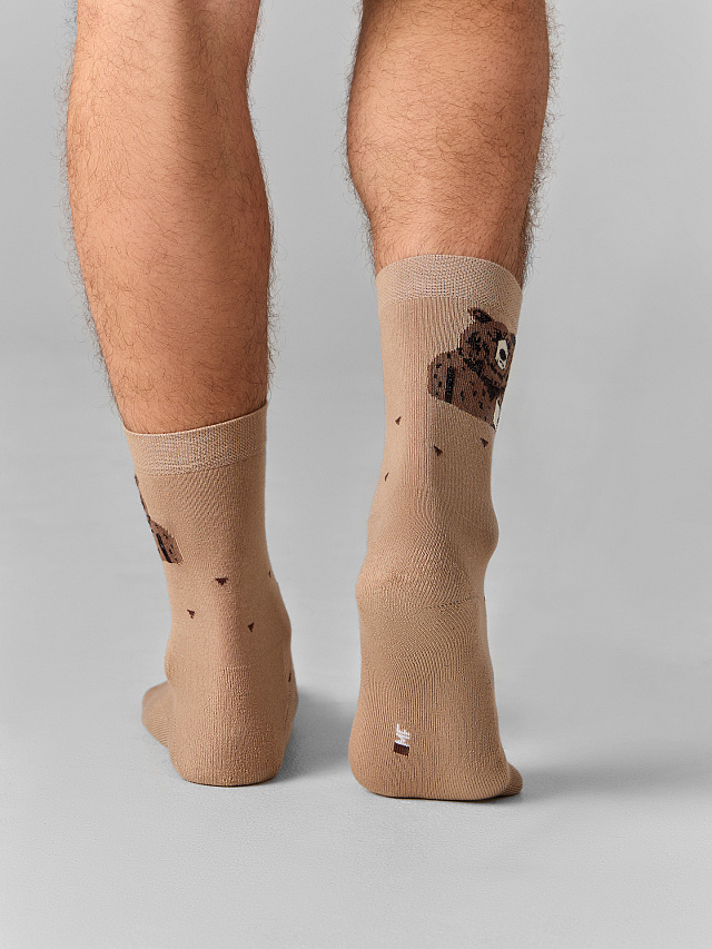 рис.2943 Мужской носок классический высокий с махровой стопой и рисунком в виде медведя.