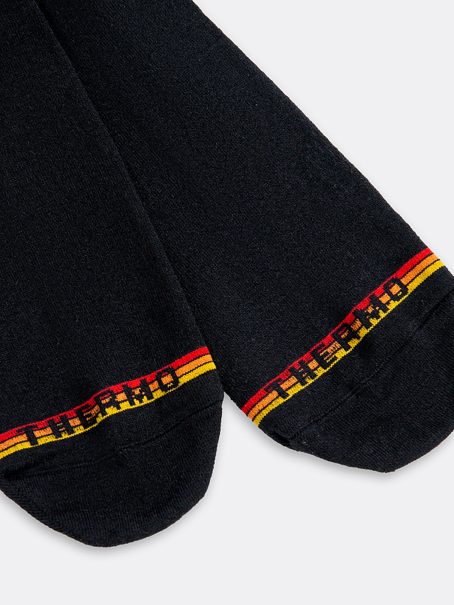 Высокие мужские носки "термо" черного цвета с желтой и красной полоской