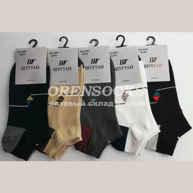 МУЖСКИЕ УКОРОЧЕННЫЕ НОСКИ ХЛОПОК С ЛАЙКРОЙ АССОРТИ ШУГУАН A981-2