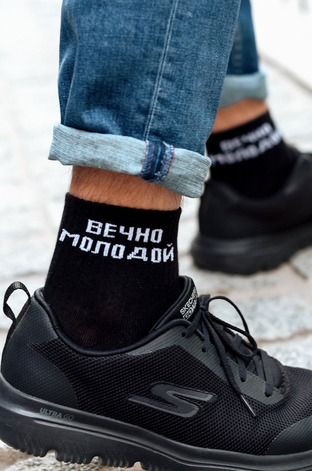 Оригинальная надпись — классный акцент в вашем повседневном образе! В таких носках вы не останетесь незамеченным. Пусть мир оценит вашу искренность и харизму.