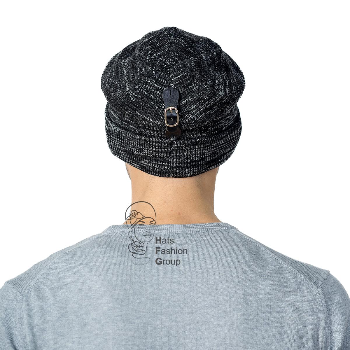 Одинарная мужская шапка с отворотом и с закрепкой-хлястиком сзади. Шапка выполнена из полушерстяной пряжи. Сбоку украшена фирменной кожаной шильдой.