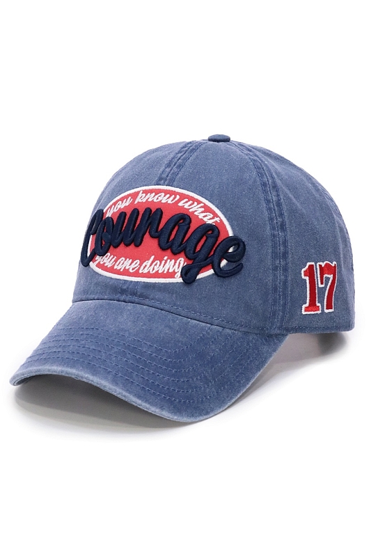 Бейсболка выполнена из "вареной" джинсовой ткани с мягкой передней частью и с изогнутым классическим козырьком. Размер регулируется металлической застежкой.