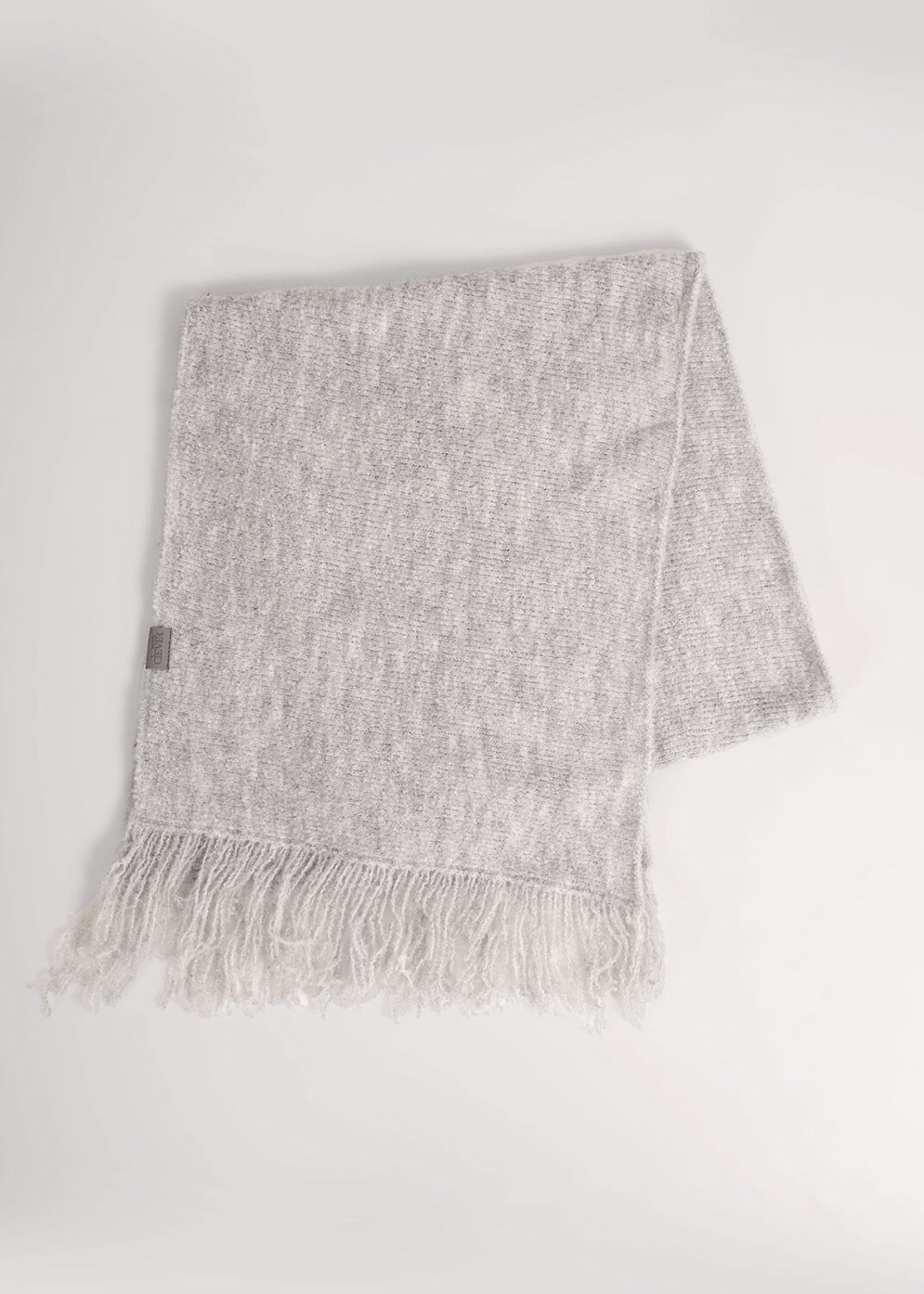Обемный женский теплый шарф с декоративной бахромой, идеально подходящий для того, чтобы укутаться в него в холодные дни.