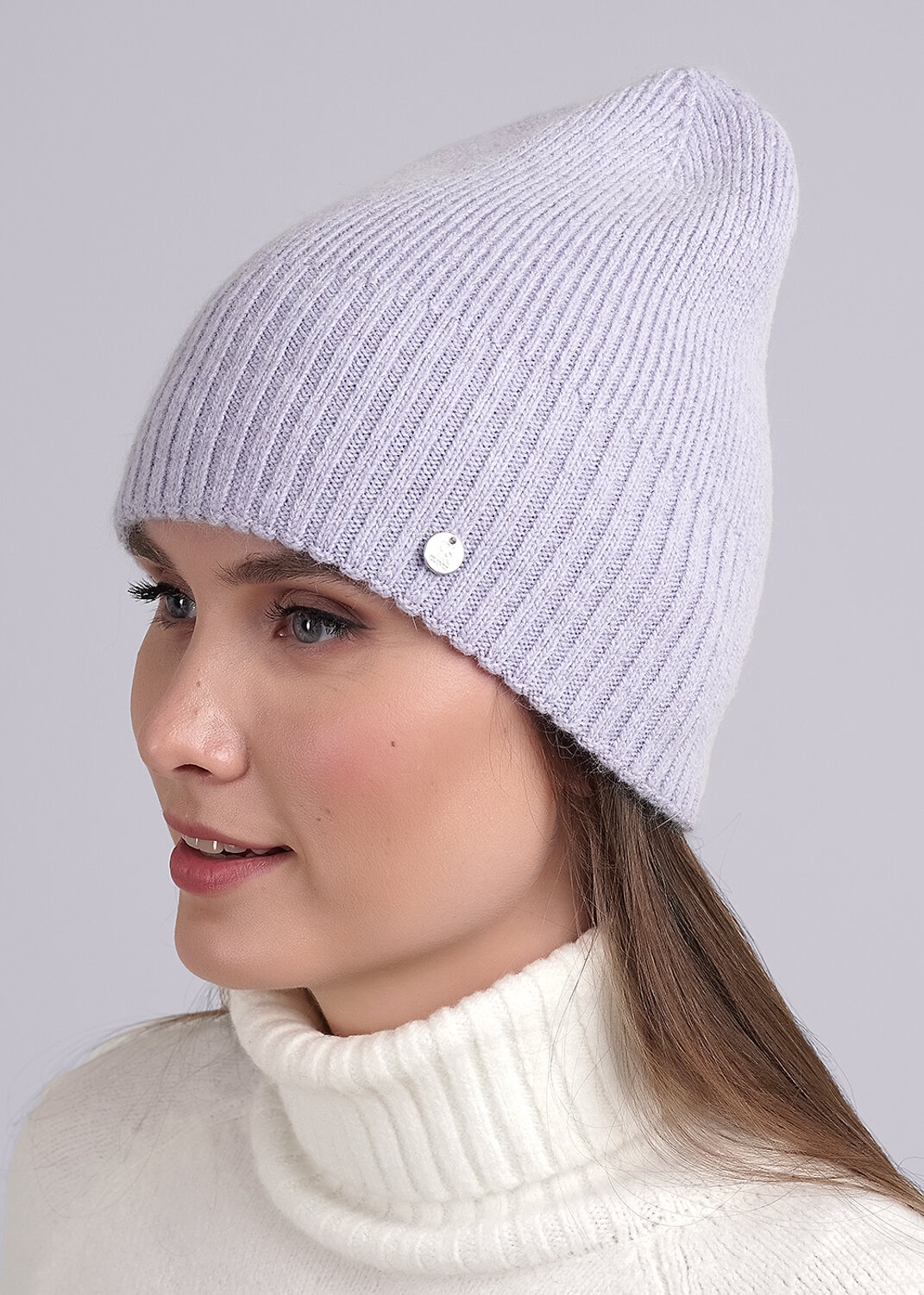 Женская двойная шапка, декорирована нашивкой логотип. Отлично подойдёт для зимы.