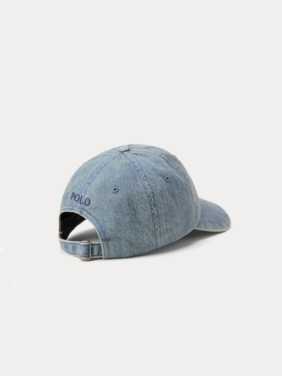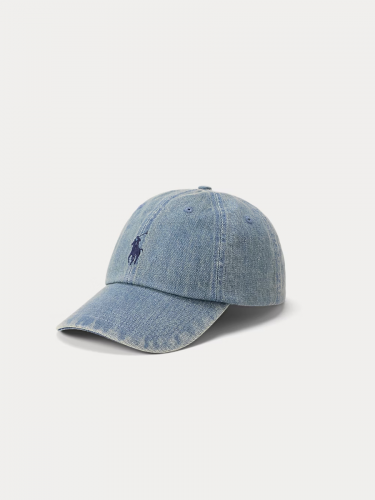 Эта бейсболка, изготовленная из денима, окрашенного настоящим индиго, украшена фирменной вышитой эмблемой R*lph La*ren — пони.