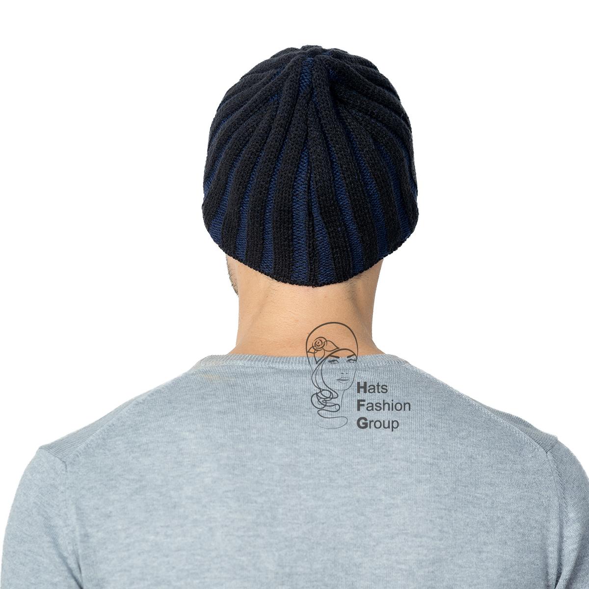 Мужская одинарная шапка из полушерстяной пряжи. Шапка сбоку украшена фирменной шильдой из кожи.