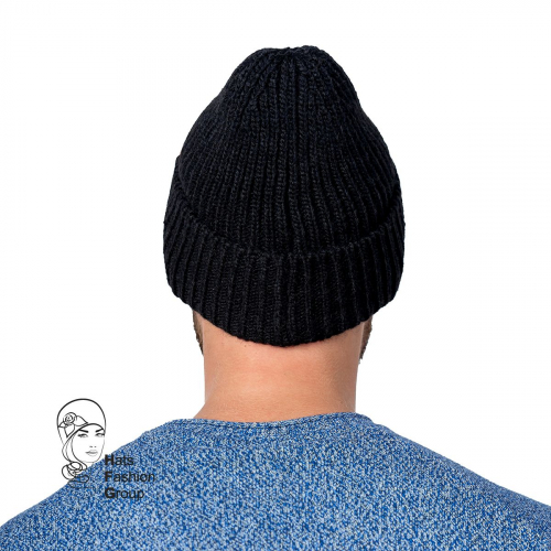 Удлиненная теплая мужская шапка с отворотом. Шапка утеплена флисом. Сбоку украшена фирменной кожаной шильдой.
