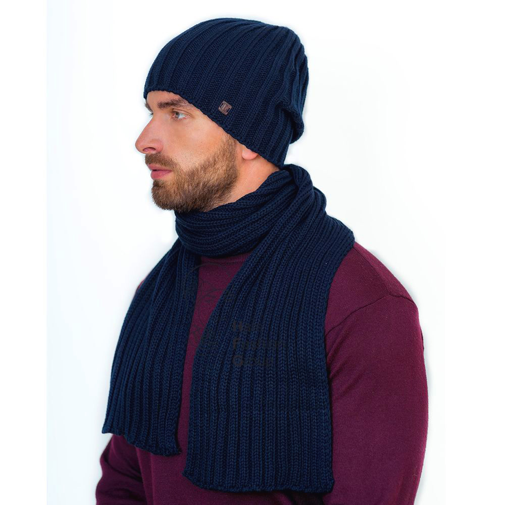 Удлиненная мужская шапка-колпак выполнена в вязке «английская резинка». Флисовая подкладка делает изделие комфортным в носке. Шапка сбоку украшена фирменной шильдой из кожи.
