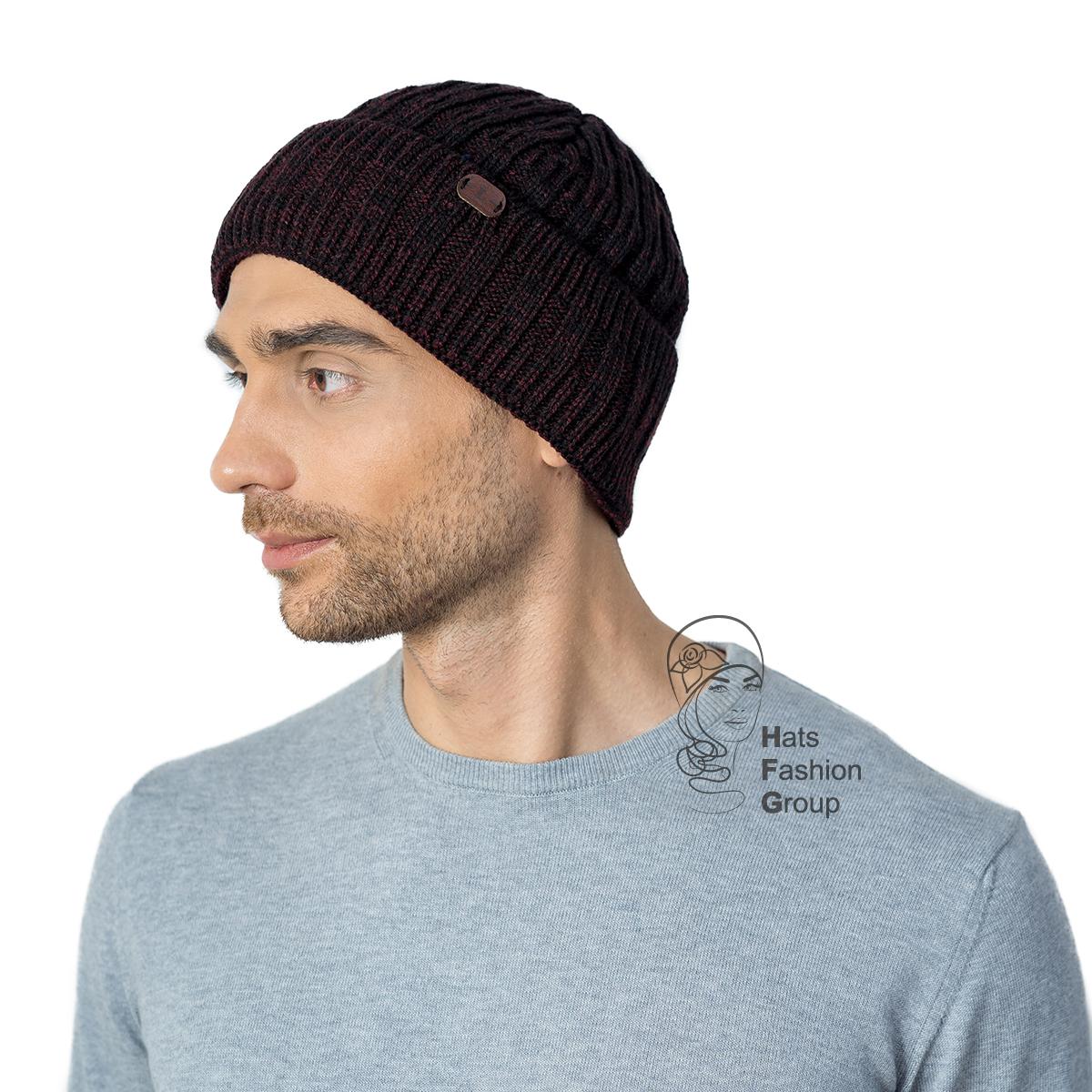 Мужская теплая шапка по голове с отворотом из полушерстяной пряжи. Шапка на флисе. Шапка сбоку украшена фирменной шильдой из кожи.