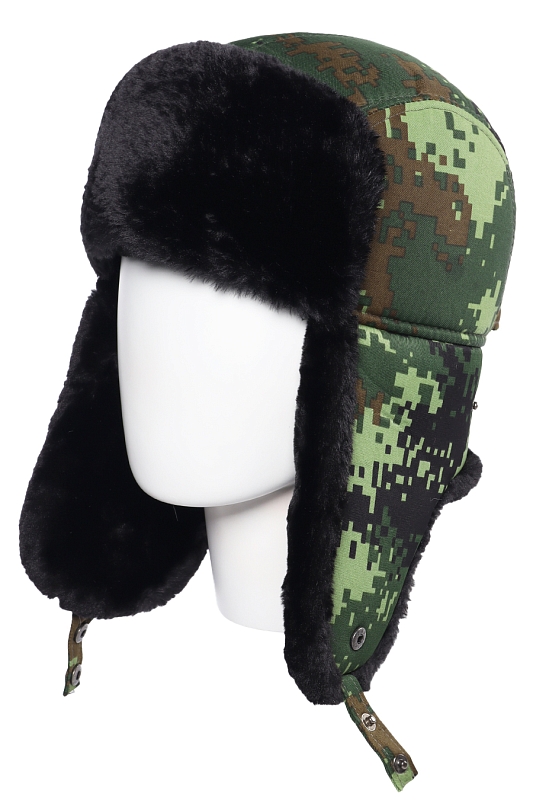 На ушах застежки-кнопки, сзади металлический регулятор размера. камуфляж