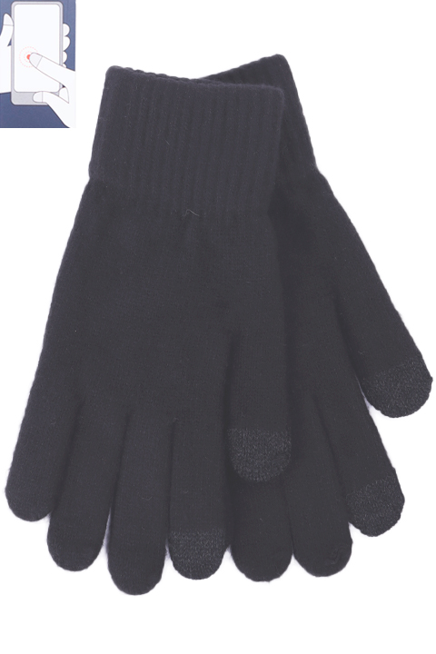 Перчатки мужские одинарные, внутри небольшой начес. Пряжа на кончиках указательного и большого пальца заканчивается нитями другого цвета, что позволяет пользоваться сенсорным экраном, не снимая перчаток.