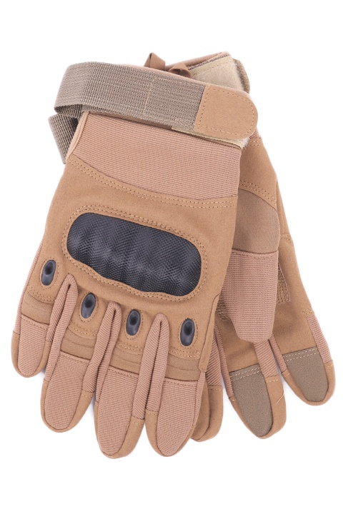 Перчатки изготовлены из иск.замши и вентиляционными вставками. На ладони усиленная вставка из кожи с уплотнителем. Накладки для костяшек выполнены из специального ударопрочного материала. Надежная фиксация велкро-липучкой вокруг запястья. Нашивки на кончиках большого среднего и указательного пальцев позволяют пользоваться сенсорным экраном, не снимая перчаток.