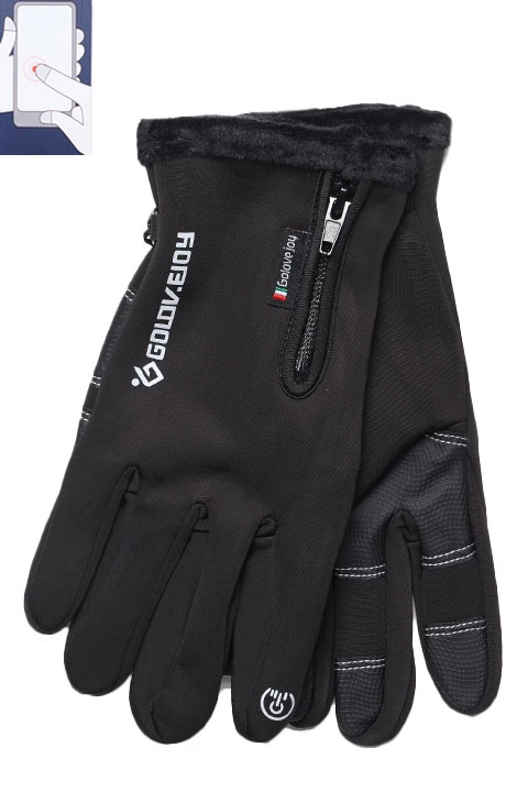 Перчатки спортивного стиля сенсорные (все пальцы), выполнены из плотной трикотажной ткани на флисовой основе. На ладони и пальцах вставки из прорезиненной ткани, на тыльной стороне молния для удобного одевания.