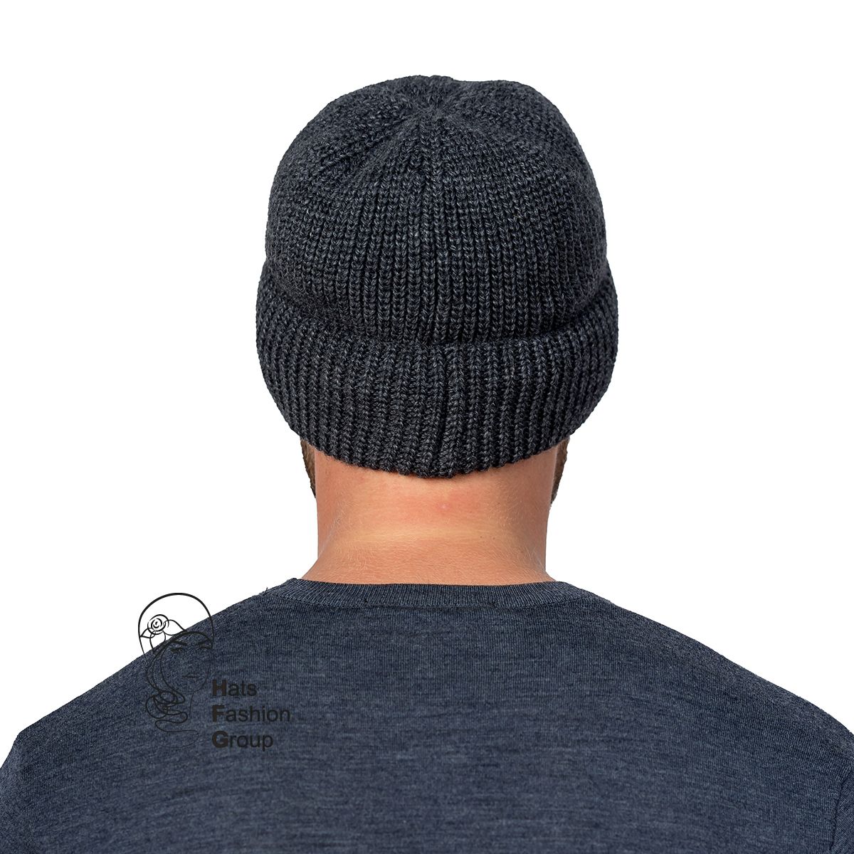 Мужская одинарная шапка с отворотом, выполнена из полушерстяной пряжи. Сбоку украшена фирменной металлической шильдой.