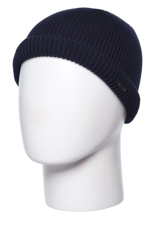 Шапка-бини короткая (по голове) однослойная, с маленьким двойным отворотом.