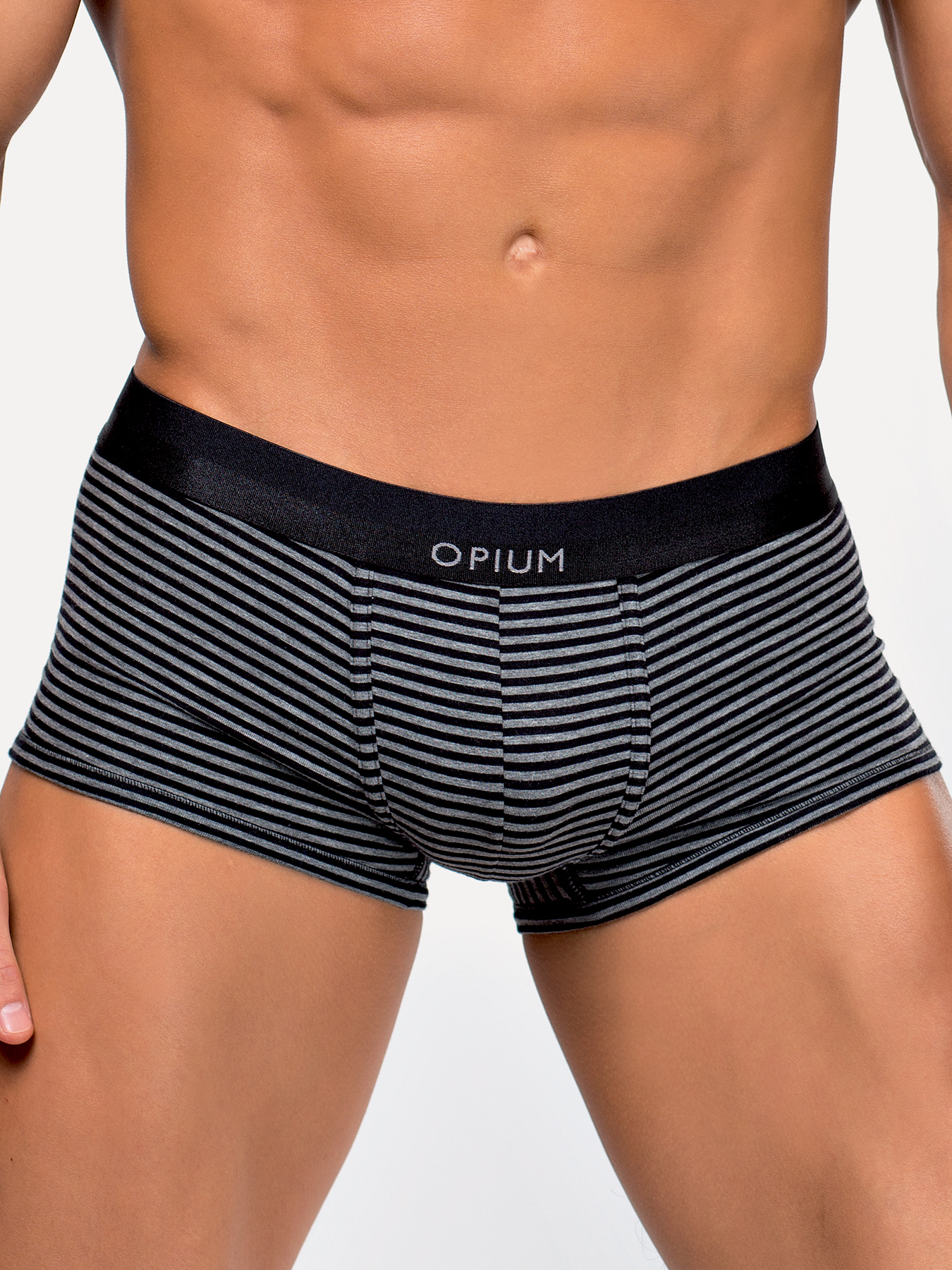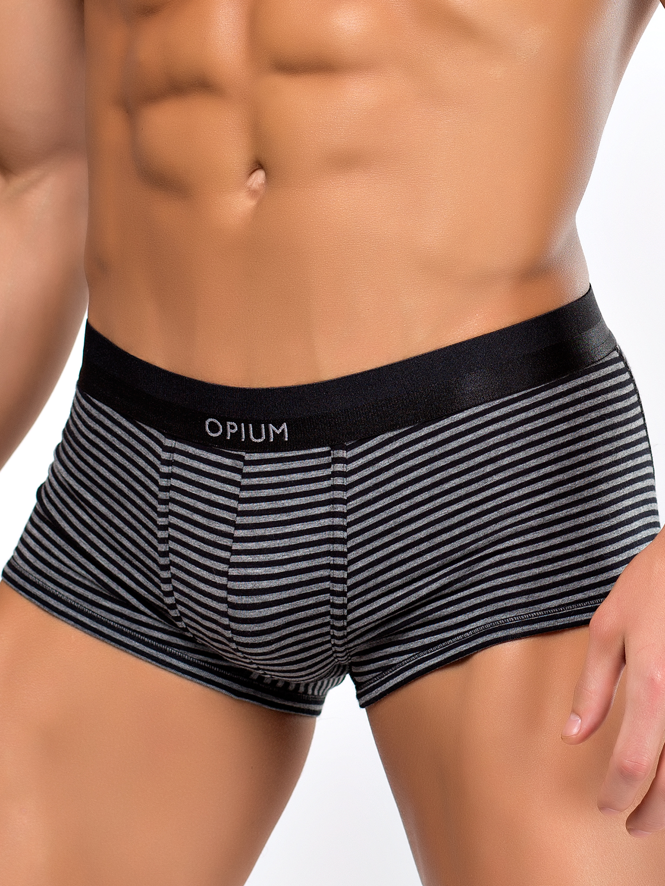 Мужские боксеры из хлопка (95%) с эластаном (5%) популярной классической расцветки в серо-черную полоску. Гульфик выполнен из двух слоев ткани со скрытыми внутренними швами. Шелковистая приятная к телу резинка с логотипом Opium. Благодаря сдержанной благородной расцветке – эта модель займет достойное место в Вашем гардеробе.