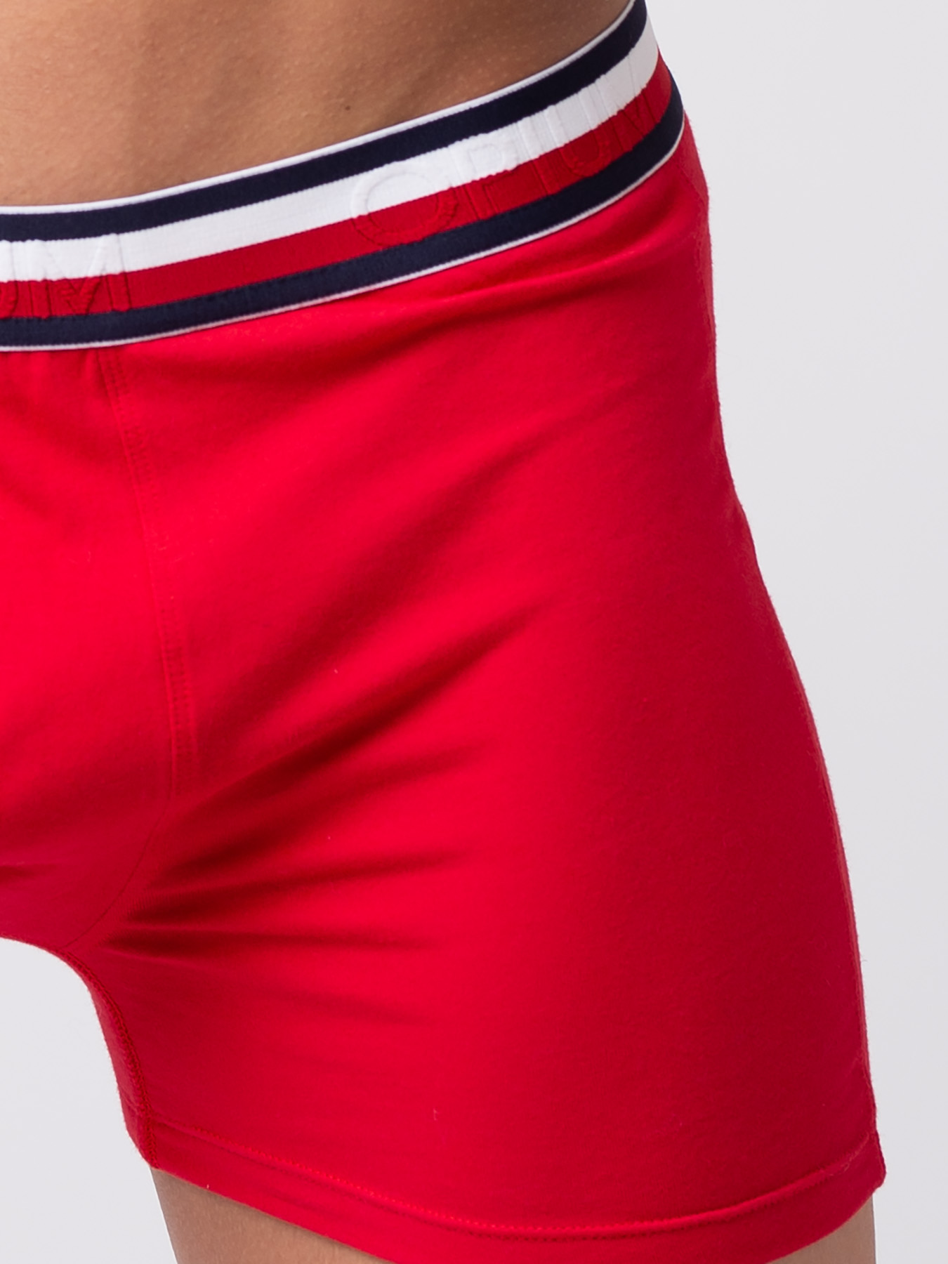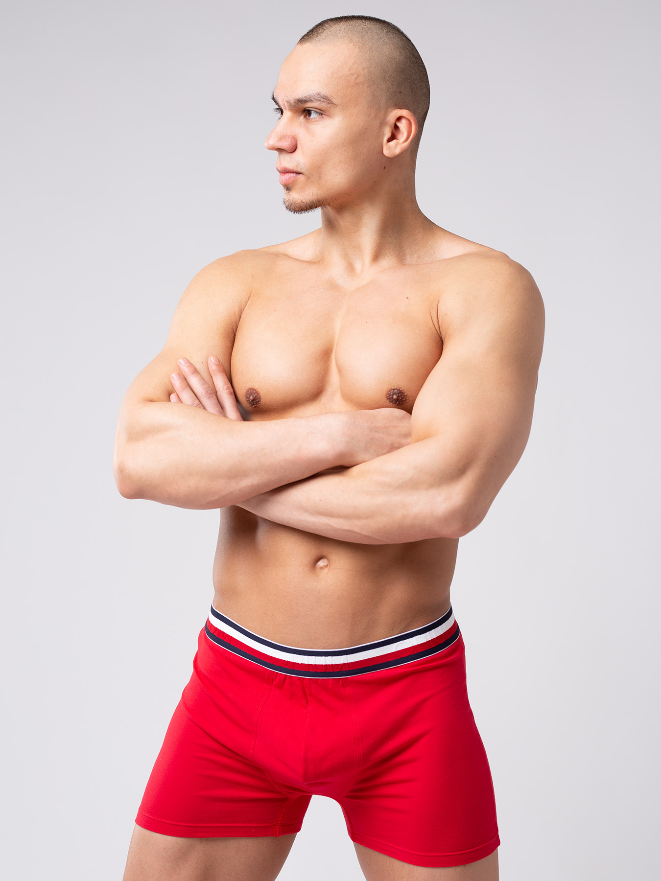Мужские боксеры из мягкого хлопкового трикотажа необыкновенно комфортны. Брендированная резинка с вывязанным логотипом на фоне сине-бело-красных полос. Двухслойный гульфик, дополнительная вставка для большего удобства. Имеются в активном красном цвете или спокойном и уютном «серый меланж».