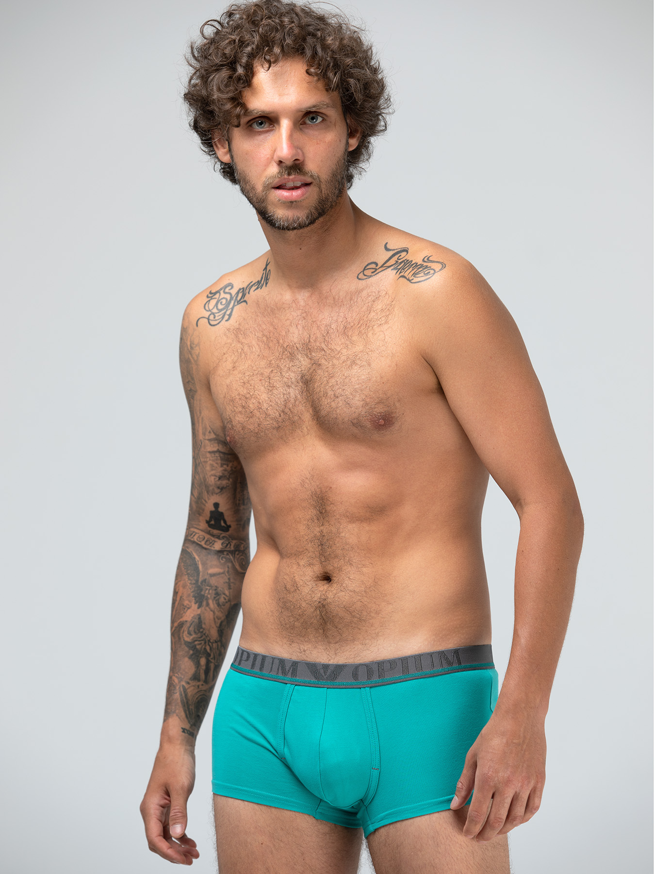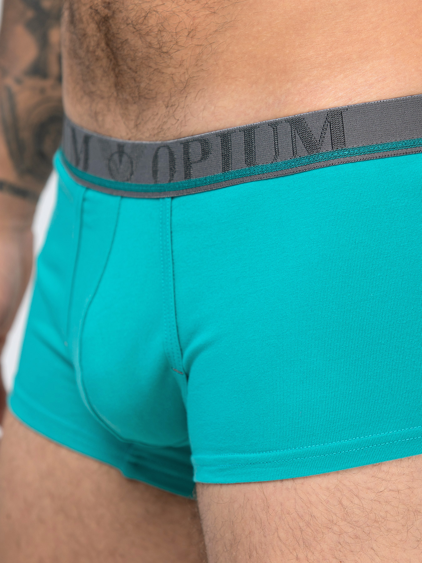 Яркие боксеры в трех сочных и жизнерадостных расцветках: вызывающая фуксия, магнитический фиолетовый и бодрящий цвет морской волны. Удобная шелковистая резинка с вышитым логотипом Opium.