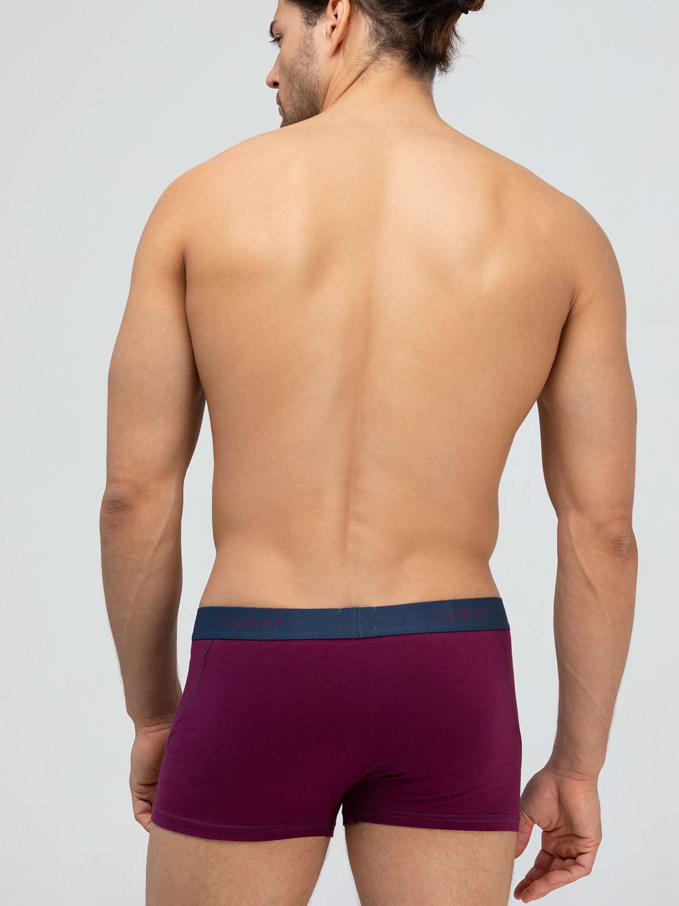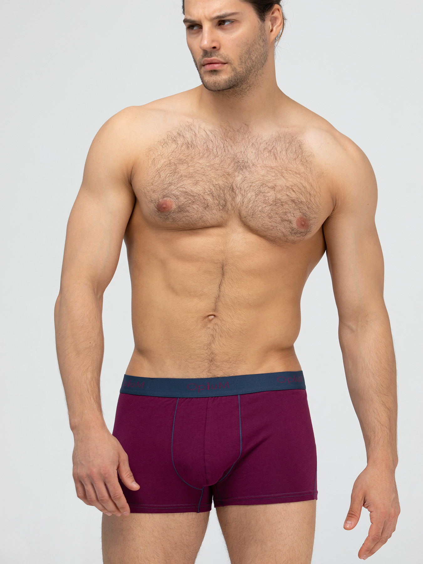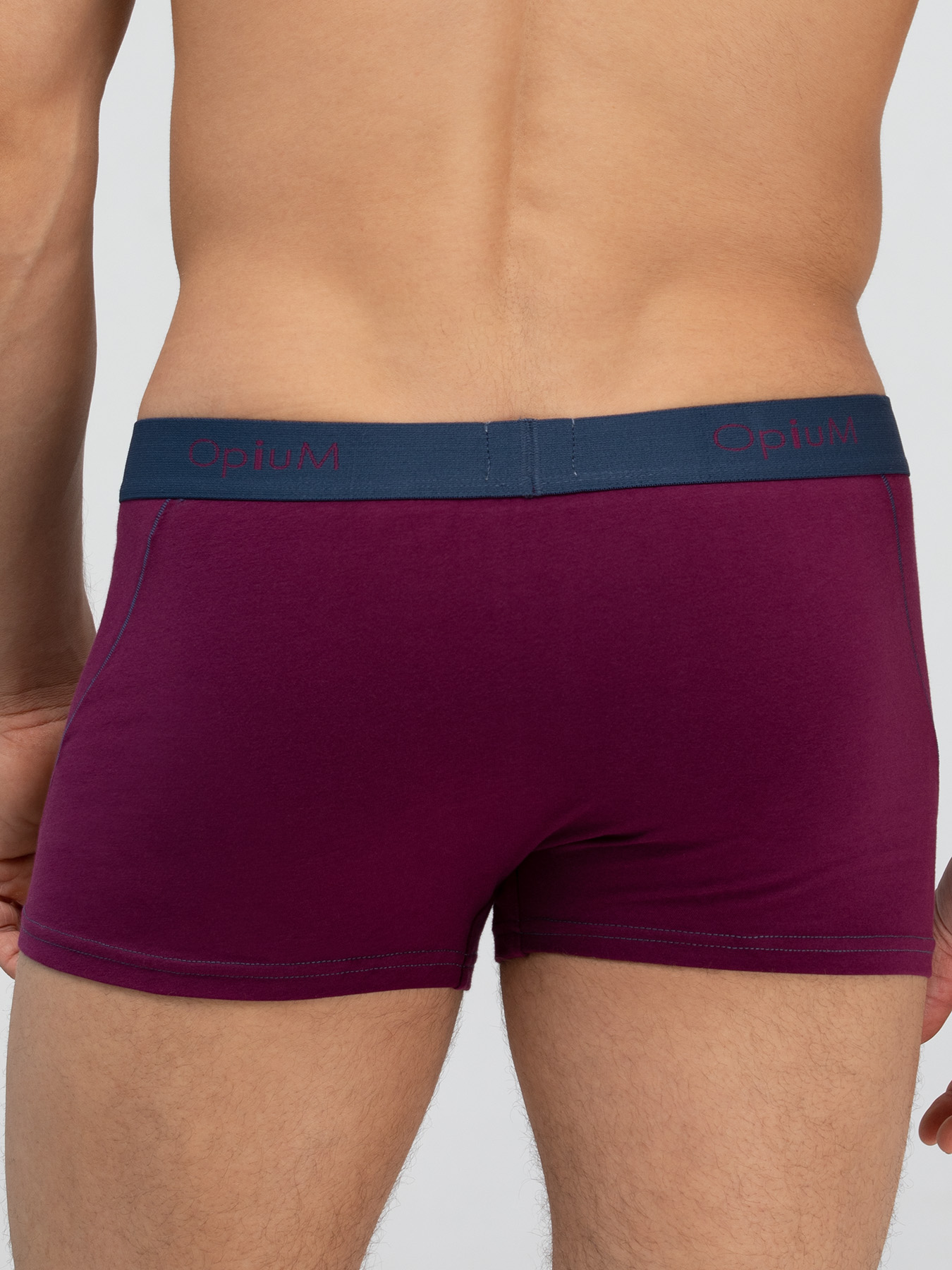 Классическая модель мужских боксеров вишневого цвета с синей отстрочкой и мягкой резинкой с логотипом Opium.