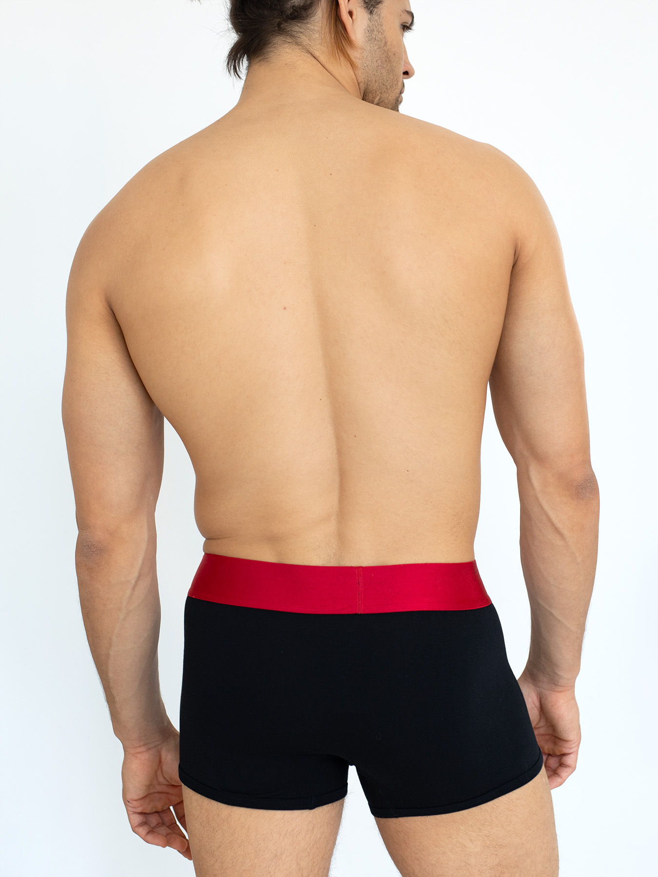 Красивые, удобные классические боксеры. Выполнены из хлопковой ткани популярного и любимого мужчинами черного цвета. Широкая шелковистая резинка с логотипом Opium мягко фиксирует трусы на теле. Красный "кардинальский" цвет резинки в сочетании с черным - модный тренд.