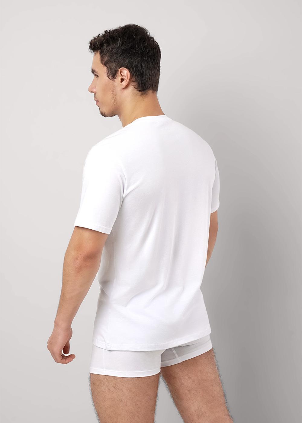 Футболка мужская из трикотажного полотна, с круглым вырезом горловины и коротким рукавом. Материал эластичен, не сковывает движений, благодаря хлопку в составе обладает дышащими свойствами.