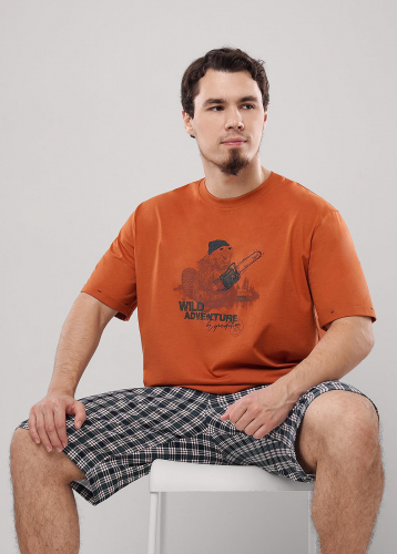 Набор мужской состоящий из футболки и шорт. Футболка из полотна "флам" с коротким рукавом, округлым вырезом горловины и дизайнерским принтом. Шорты из фактурного полотна - "пике" с декоративным гульфиком на эластичном поясе, по бокам удобные карманы.