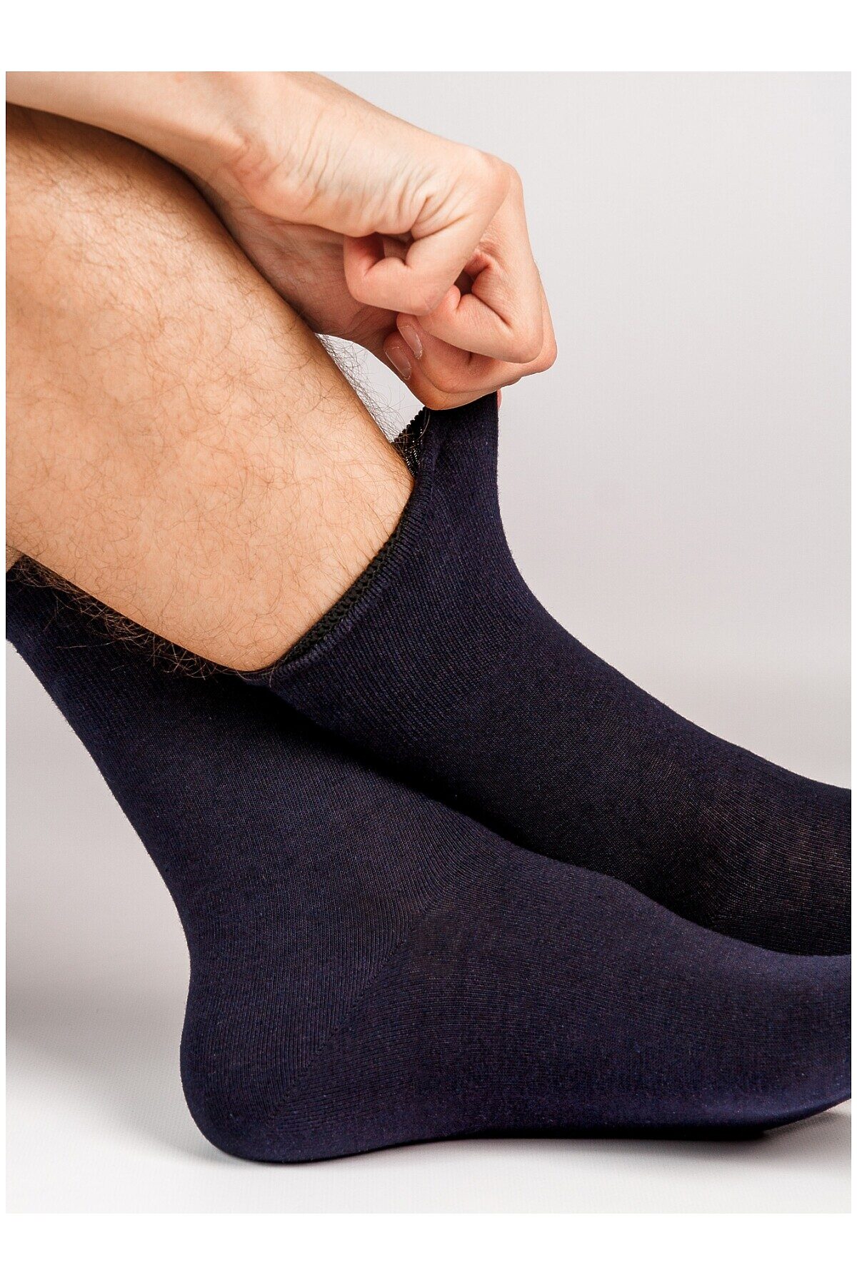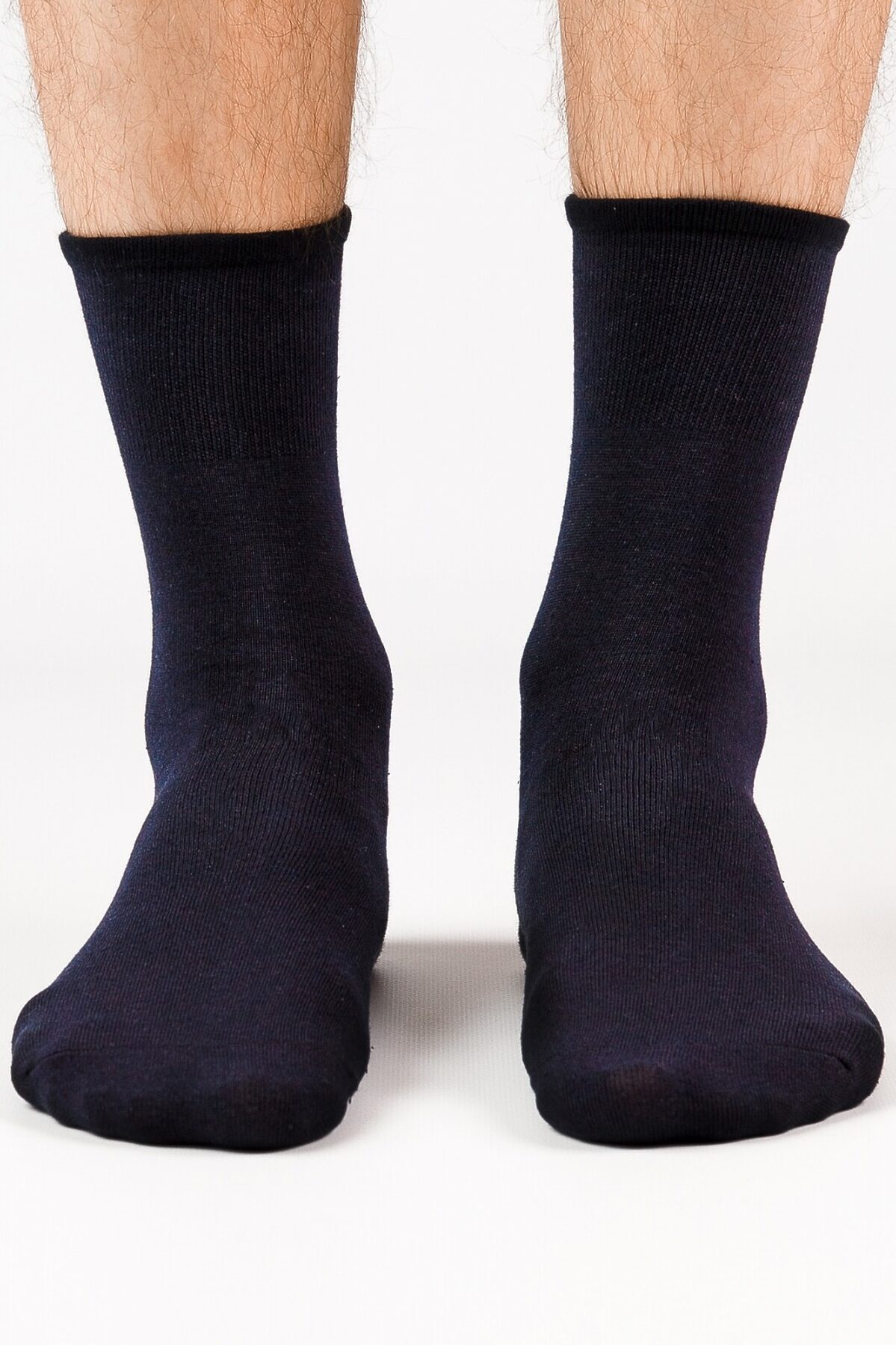 Мужские носки (Арт.4009SLWC) от торговой марки Индефини. Мужские высокие теплые носки синего цвета изготовлены из смеси материалов для комфорта и тепла. Они содержат хлопок для мягкости и воздухопроницаемости, полиэстер для прочности и быстрого высыхания, а также эластан для эластичности и хорошей посадки. Эти носки идеально подходят для холодных дней и обеспечат удобство в течение всего дня.
