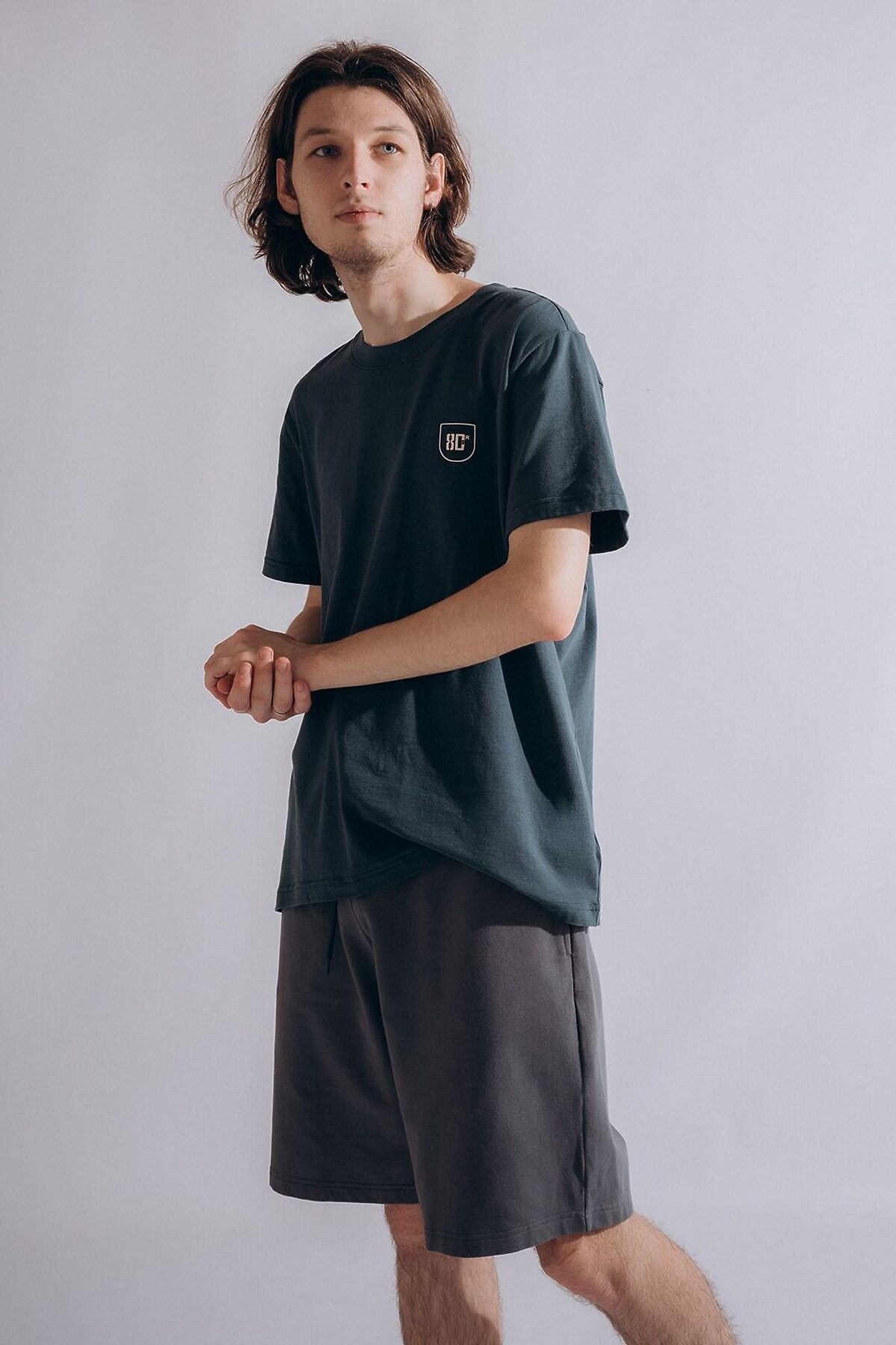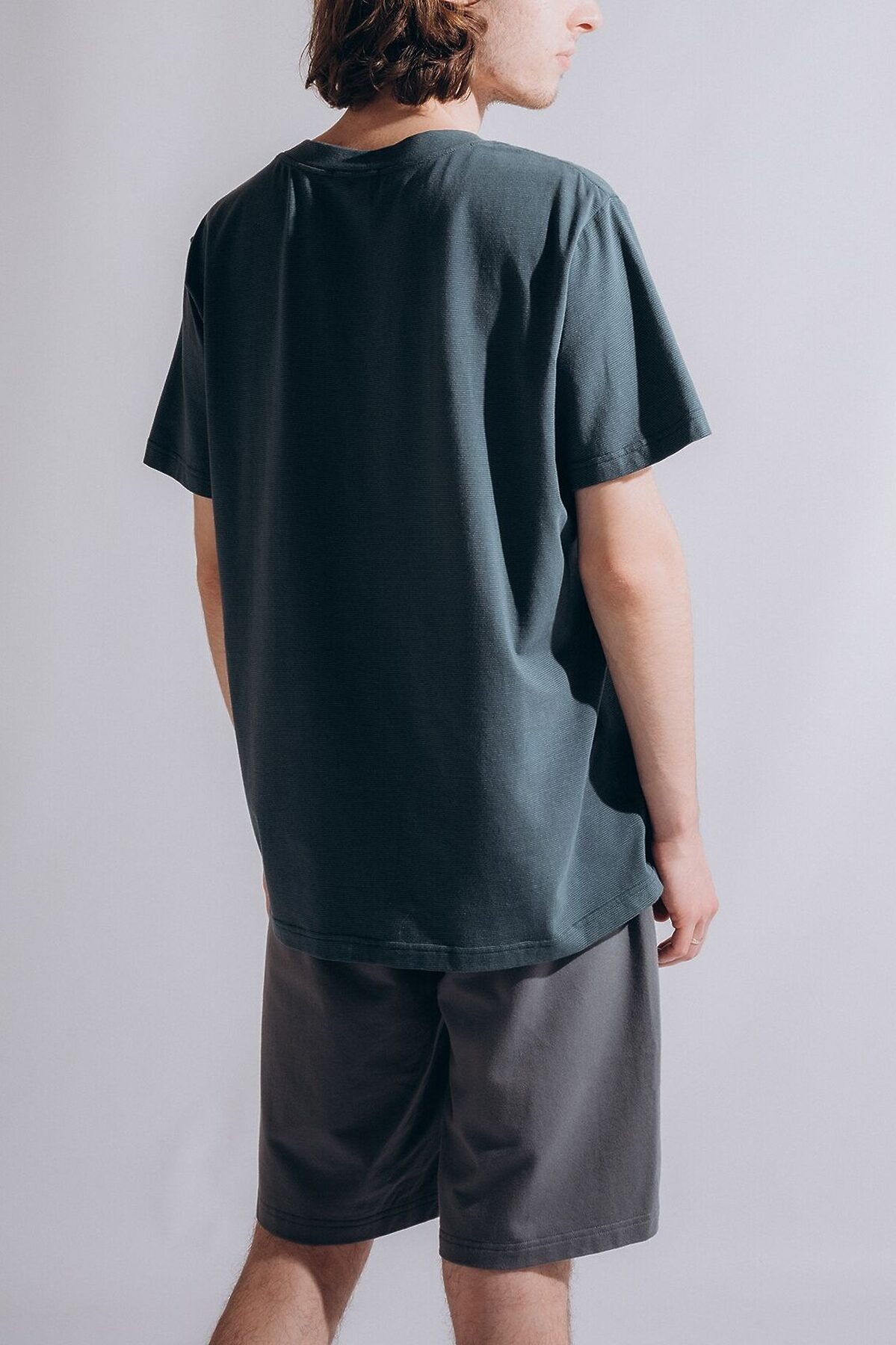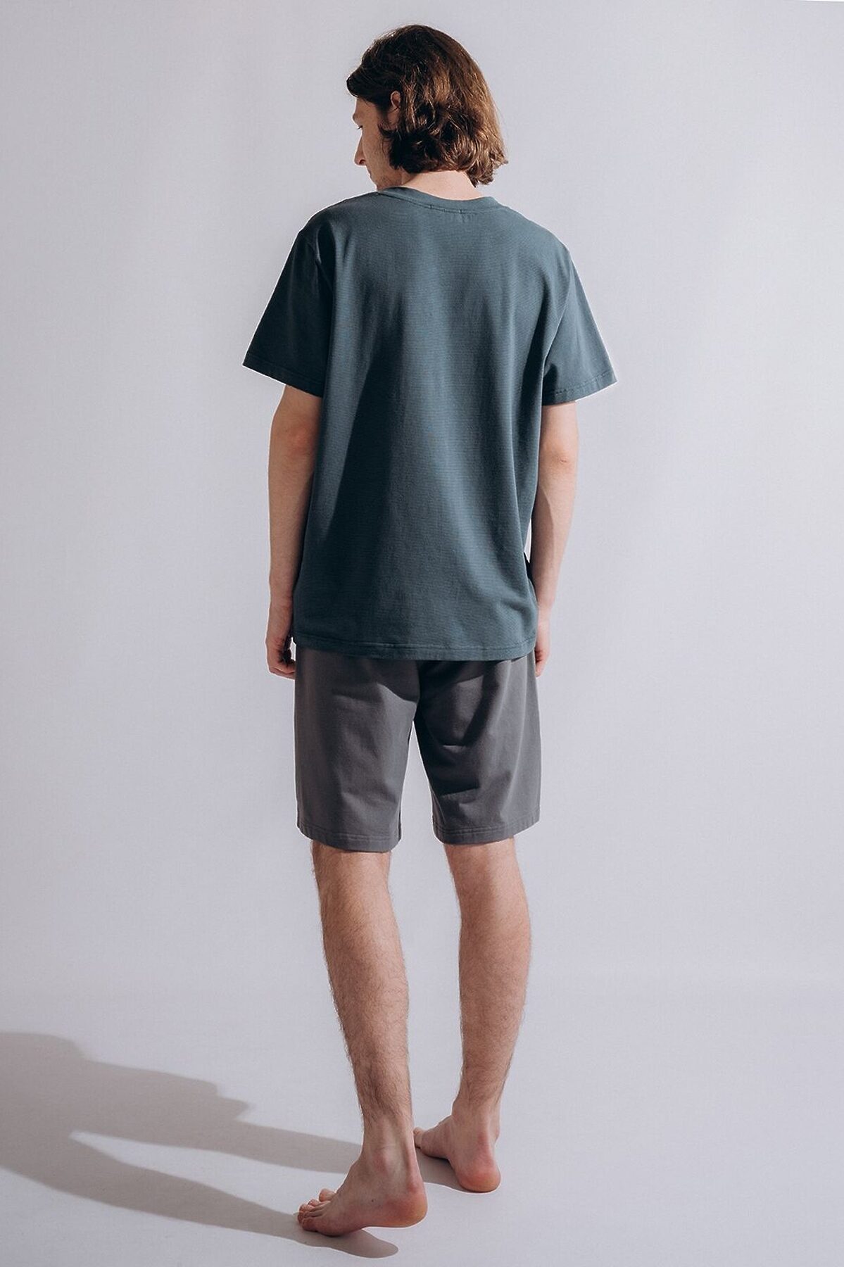 Мужская пижама 4041PBZ бренда Indefini изготовлена из хлопкового трикотажа. Она включает в себя футболку с шортами. Футболка прямого свободного кроя выполнена в зеленом цвете. Шорты серого цвета оснащены мягкой эластичной резинкой на талии с регулирующим шнурком.