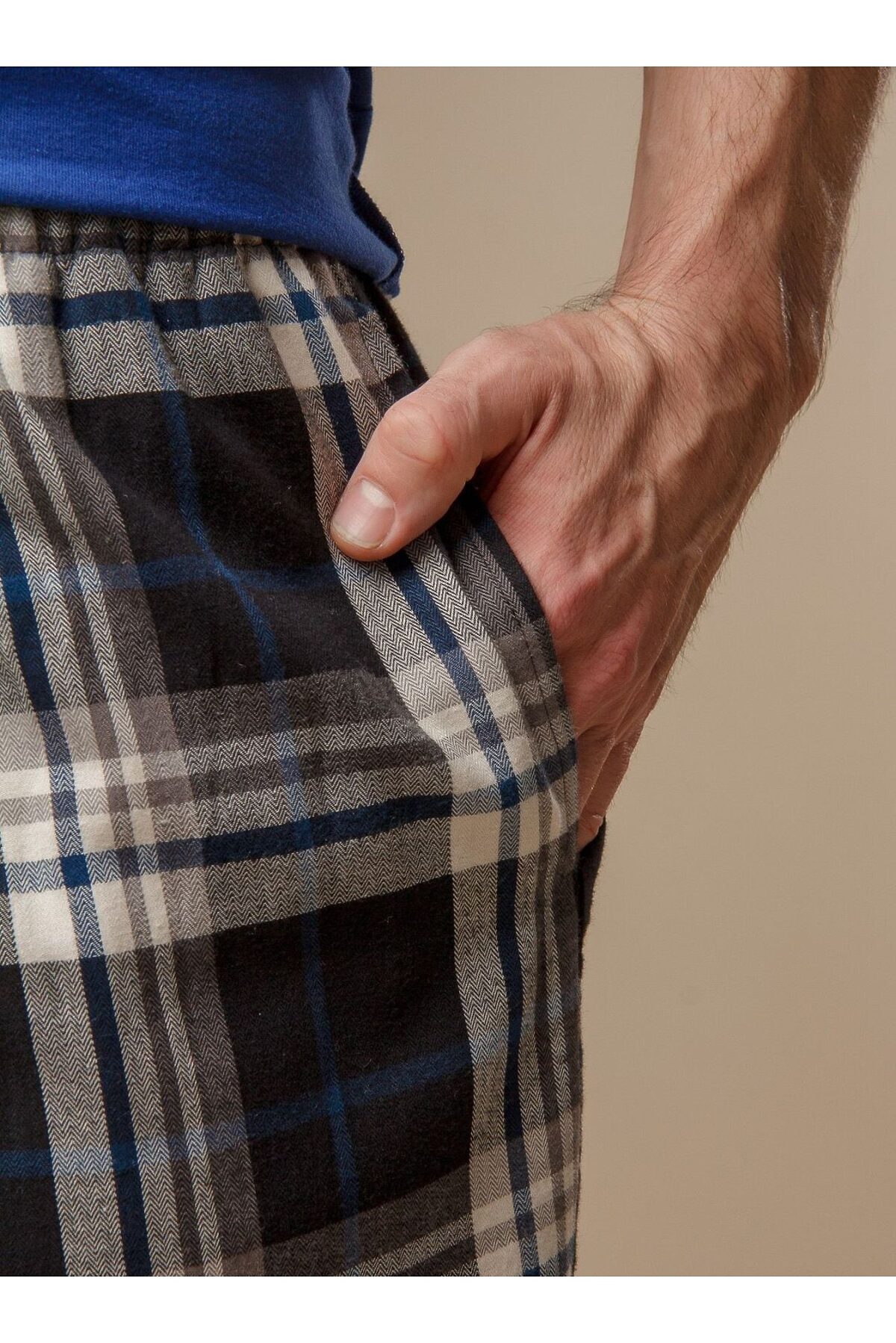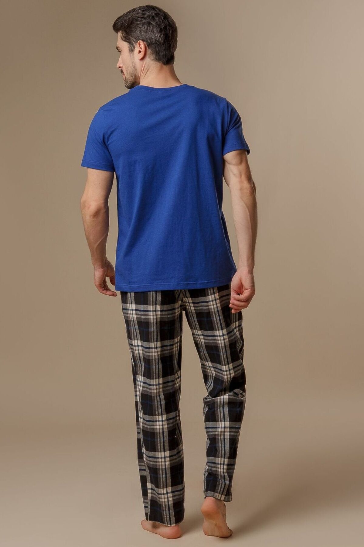 Мужская пижама из 100% хлопка делает ее очень мягкой и приятной на ощупь. Футболка имеет нагрудный кармашек с надписью и декоративной пуговицей. Свободный крой обеспечивает максимальный комфорт. Штаны имеют мягкую резинку для комфортной посадки, а белый регулирующий пояс украшен контрастными декоративными стежками.