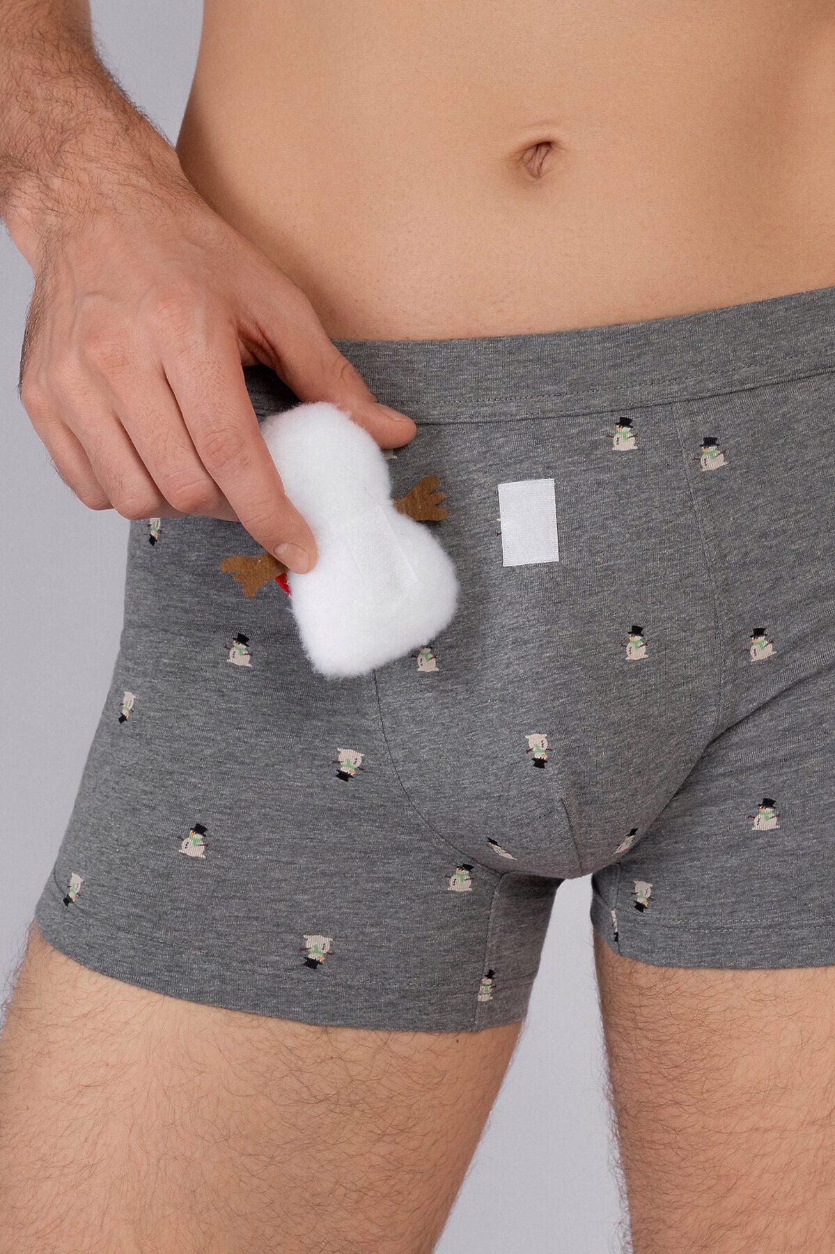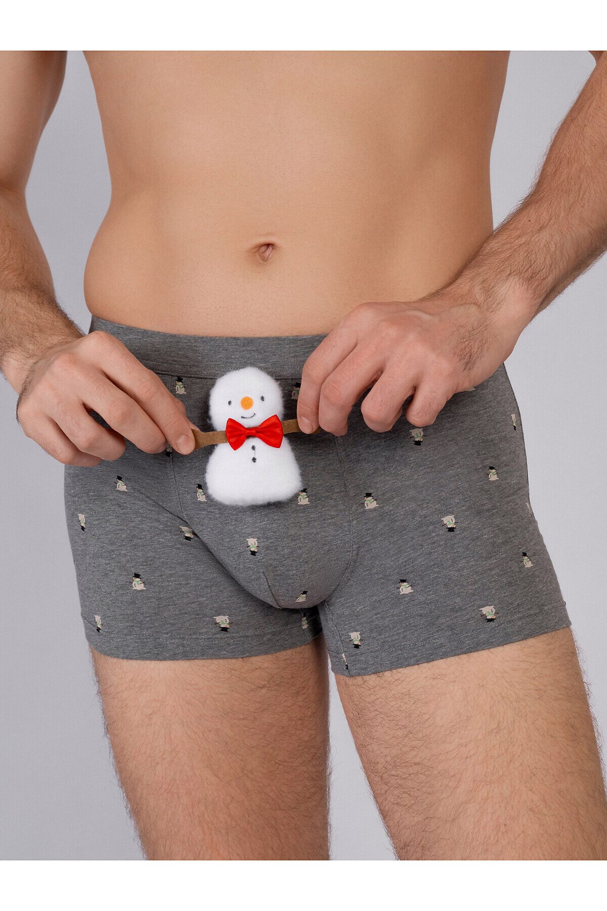 Трусы-боксеры приятно ощущаются на коже и обеспечивают свежесть при носке благодаря хлопковому материалу в составе. Мягкая эластичная резинка позволяет трусам надежно держаться на талии. Украшением трусов-боксеров является принт с изображением снеговиков и липучкой в форме большого снеговика.