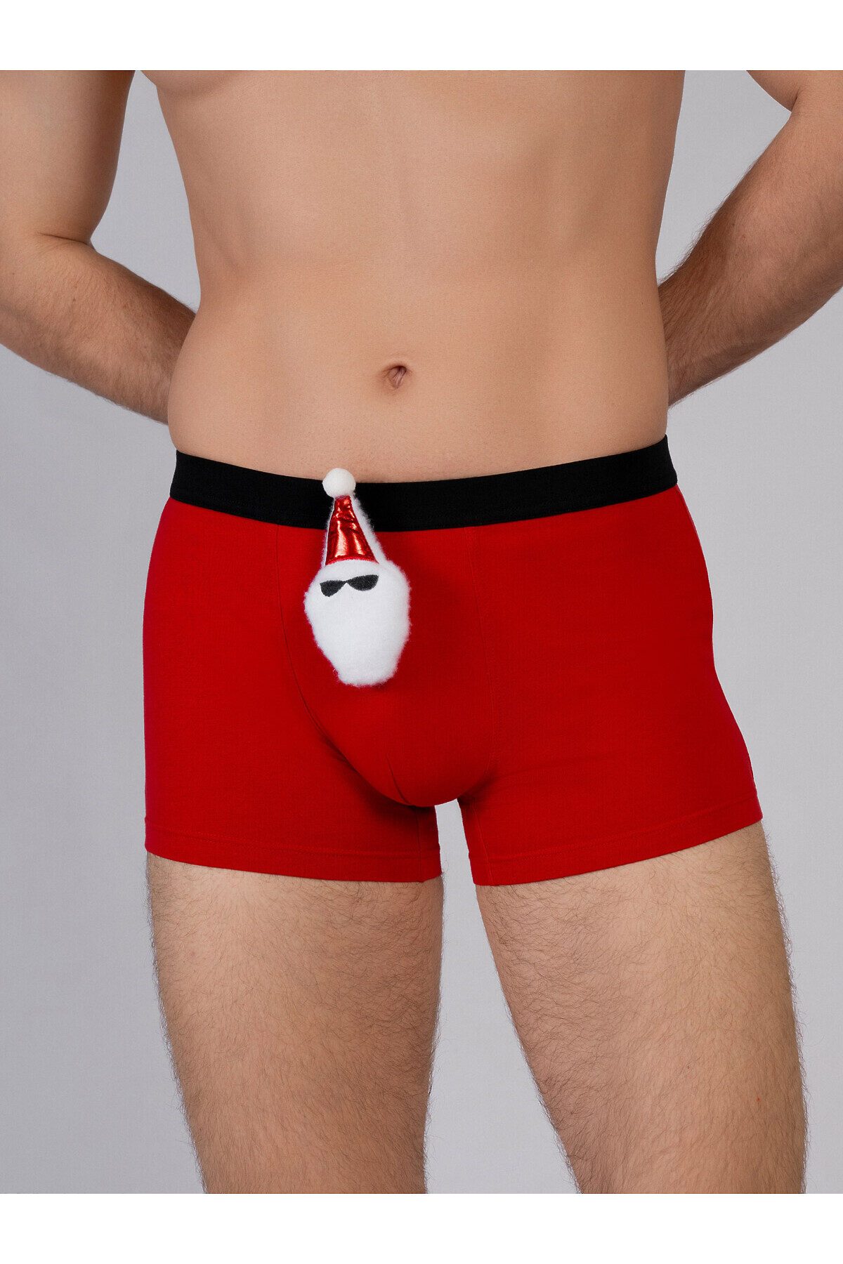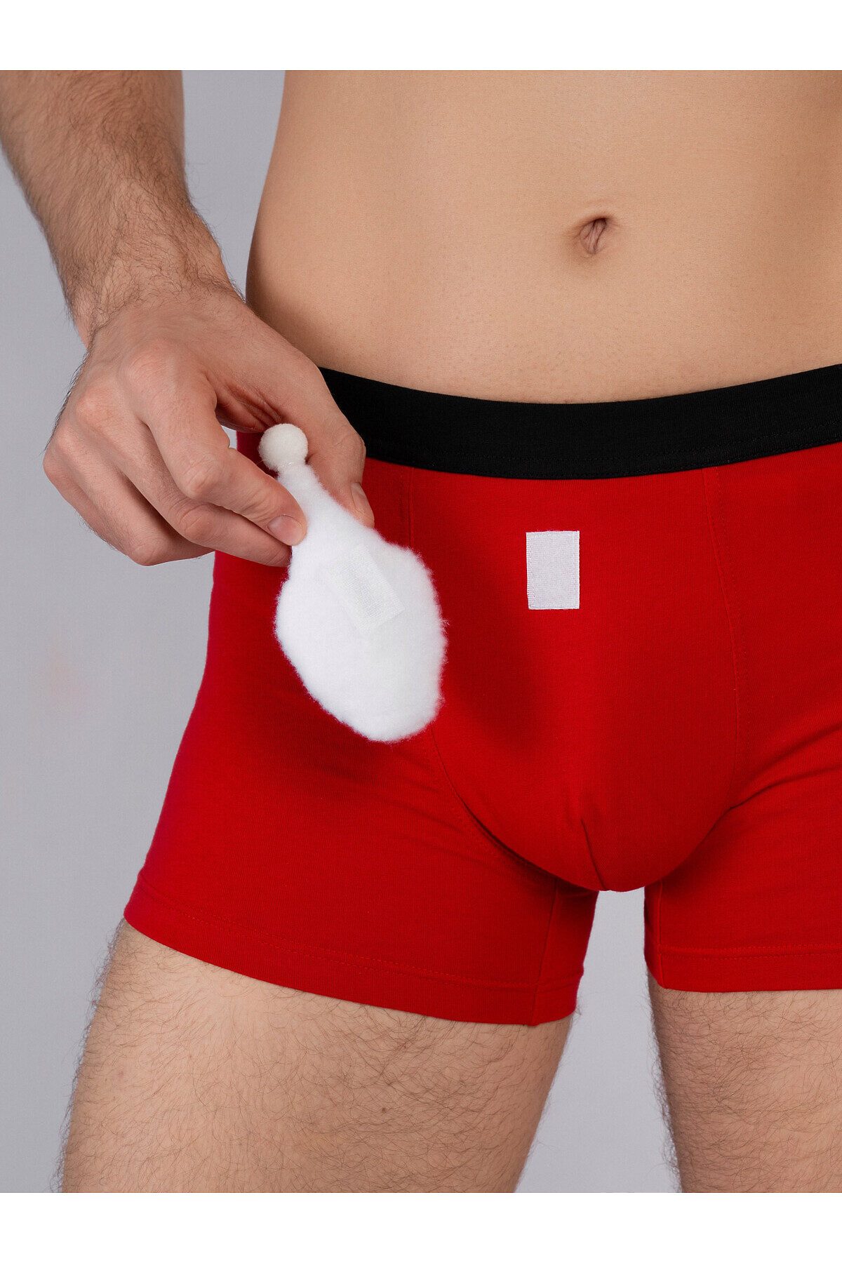 Мужские трусы-боксеры крепко держатся на талии за счет эластичной резинки. Хлопковый материал делает трусы дышащими и приятными на ощупь, что гарантирует приятные ощущения во время носки. Трусы-боксеры украшены липучкой спереди в форме головы Деда Мороза.