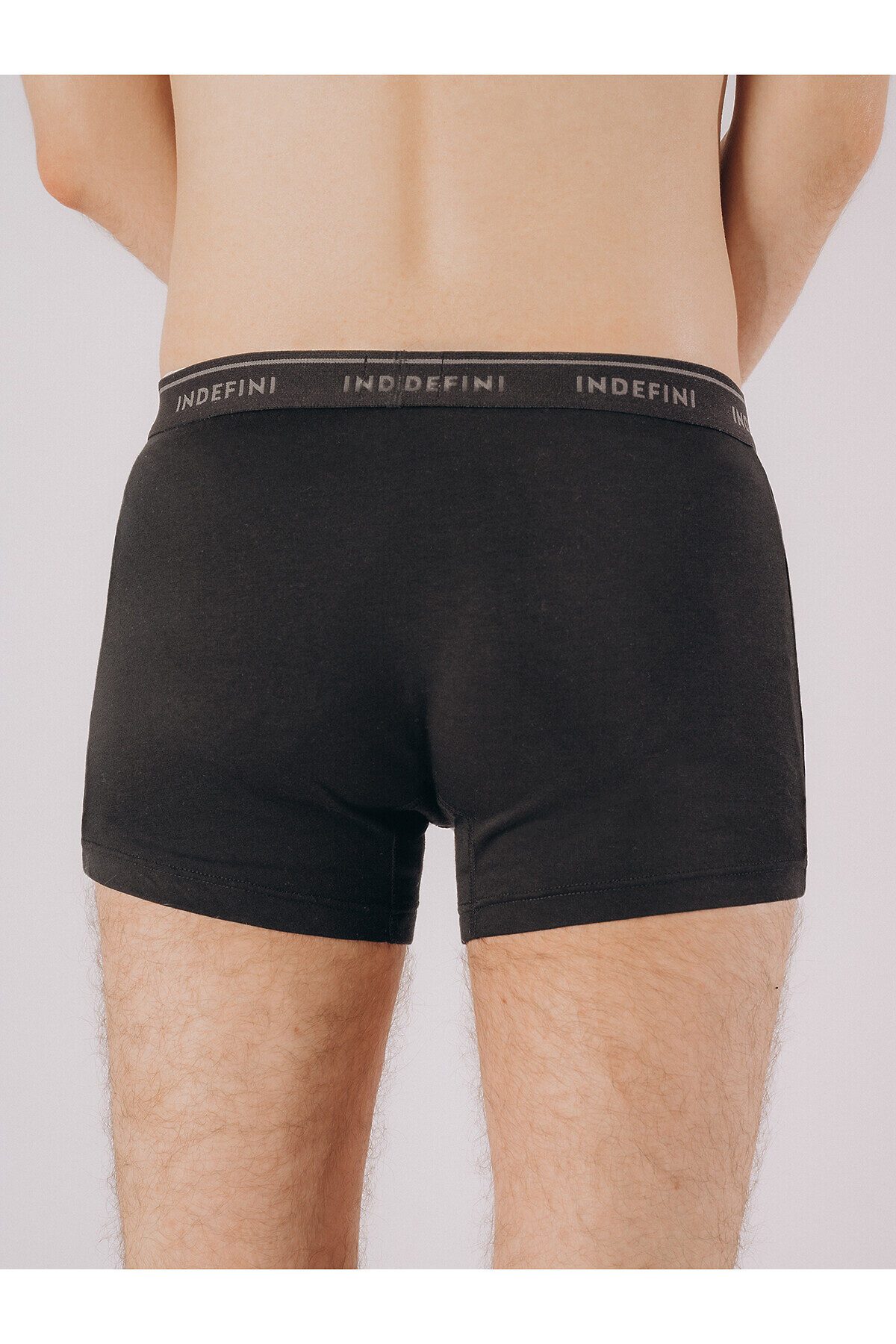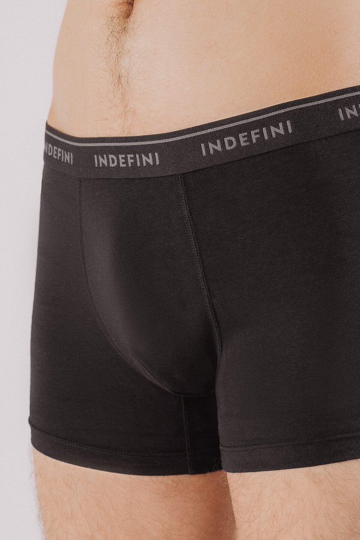 Мужские трусы боксеры изготовлены из смеси хлопка и бамбука, выполнены в классическом черном цвете. Широкая эластичная резинка крепко удерживает трусы во время носки, не натирая кожу и не оставляя следов. По всей длине резинки имеется надпись «INDEFINI».