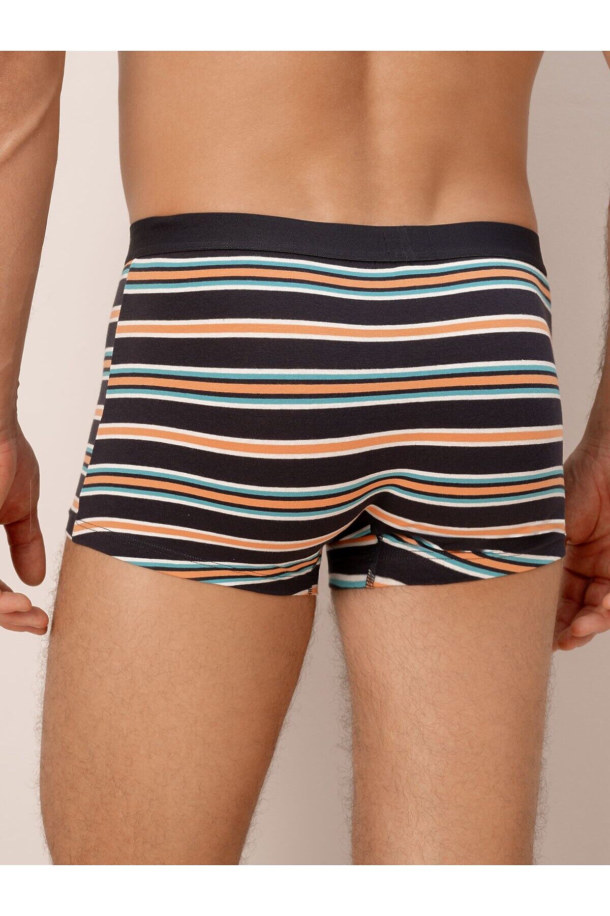 Мужские трусы боксеры изготовлены из хлопка. Трусы мягкие, не сковывают движений, но при этом плотно прилегают к телу. Мягкая резинка обеспечивает крепкую посадку на талии без дискомфорта. Трусы боксеры украшены принтом в разноцветную полоску.