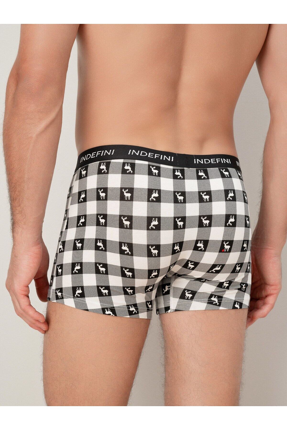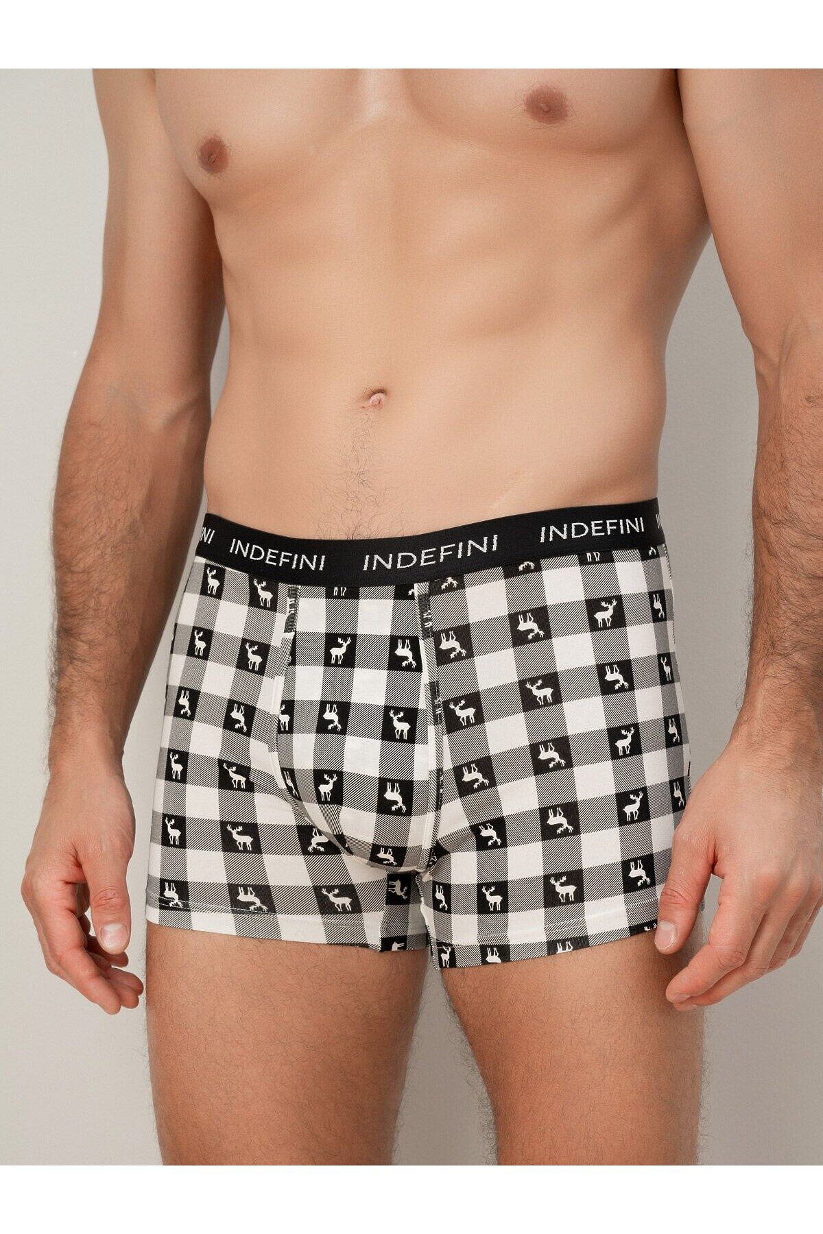 Мужские трусы боксеры 4019MUG бренда Indefini, изготовленные из хлопка, надежно прилегают к телу благодаря мягкой эластичной резинке на талии. Хлопковый материал является дышащим и пропускающим воздух, что обеспечивает приятные ощущения при носке. Трусы украшены принтом в черно-белую клетку с изображениями оленей. Трусы боксеры Indefini позволят создать новогоднюю атмосферу и добавить радости.
