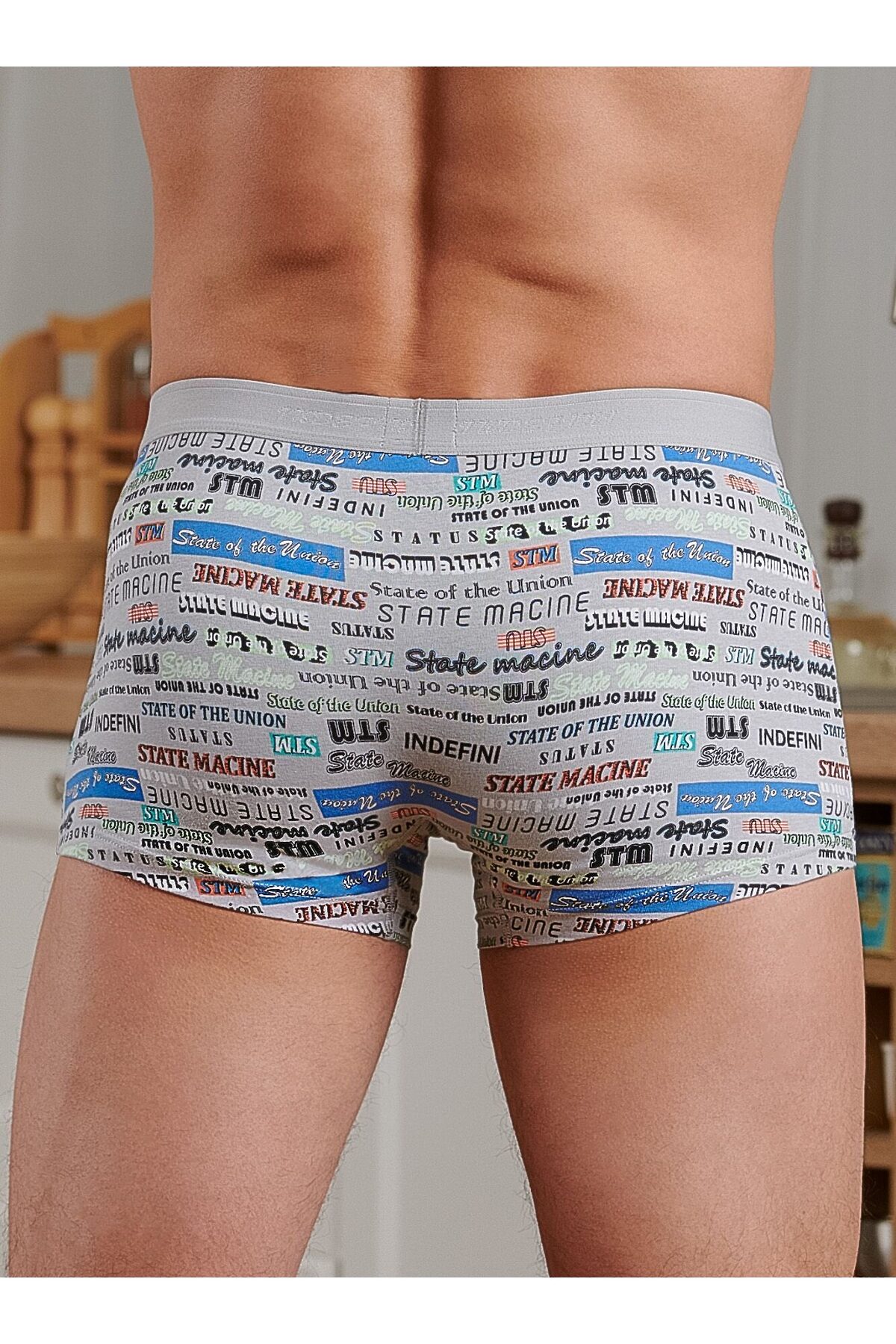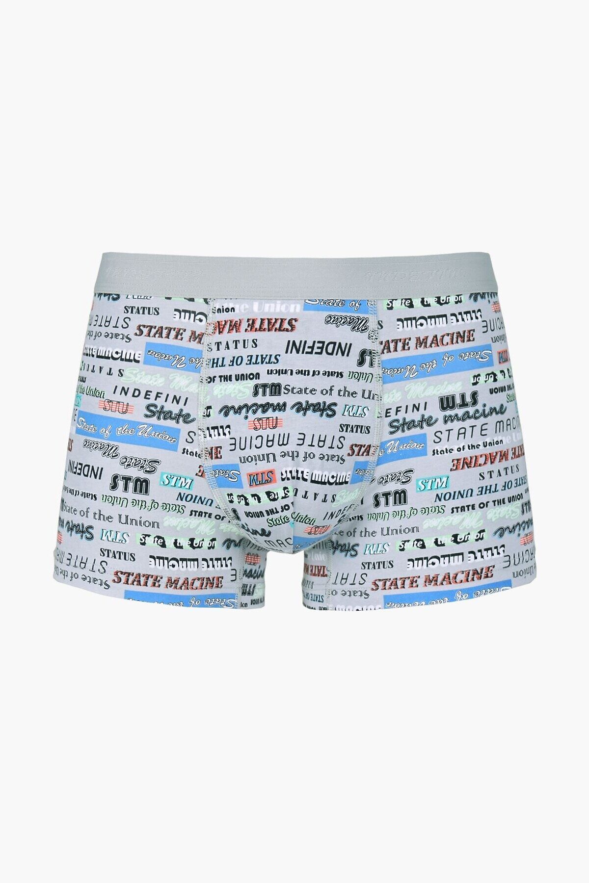 Мужские трусы боксеры 3007MUF бренда Indefini изготовлены из хлопка. Выполнены в классическом сером цвете. Широкая эластичная резинка держит трусы на талии во время носки. Трусы боксеры украшены абстрактным принтом с надписью «State Machine».