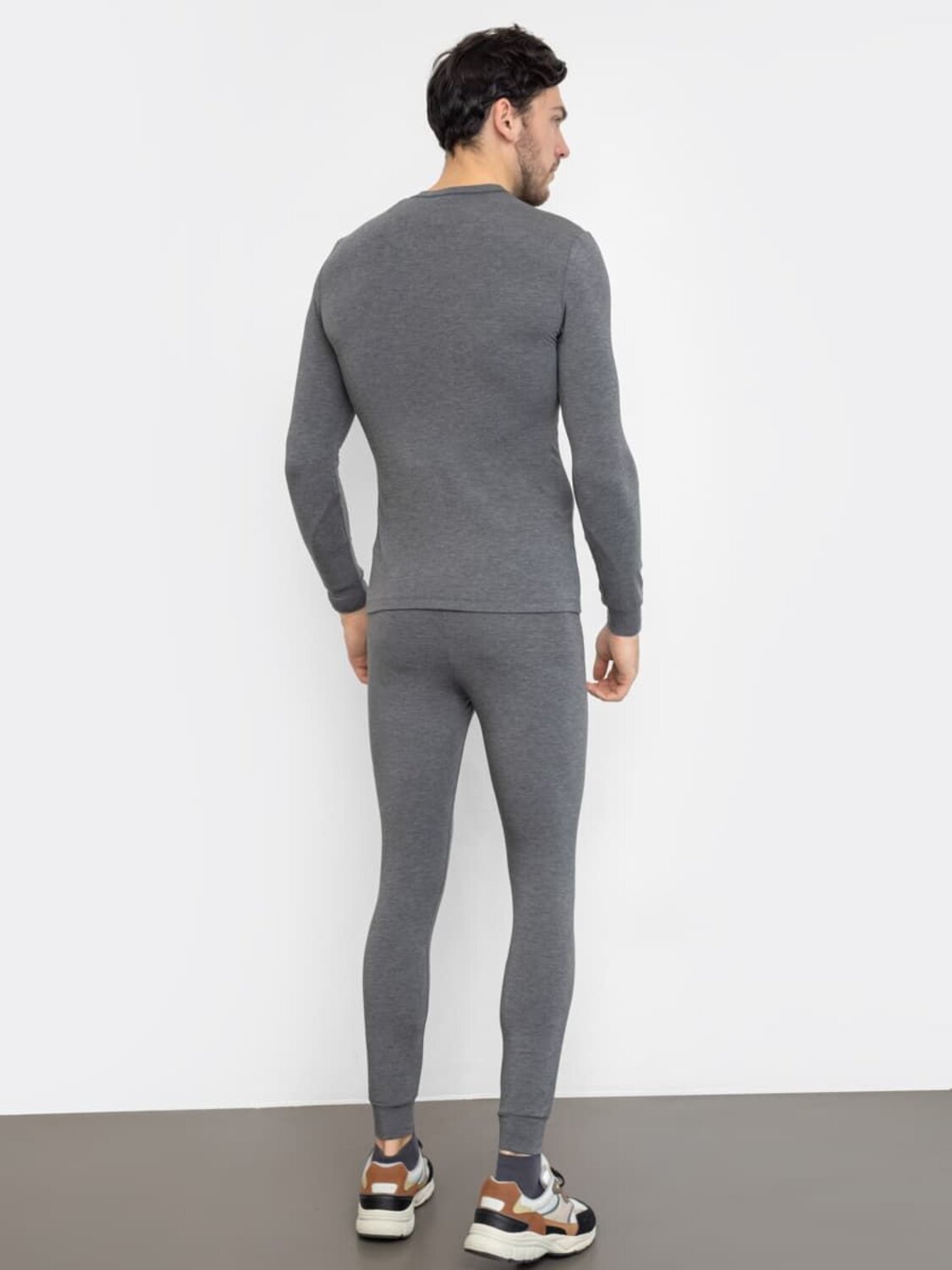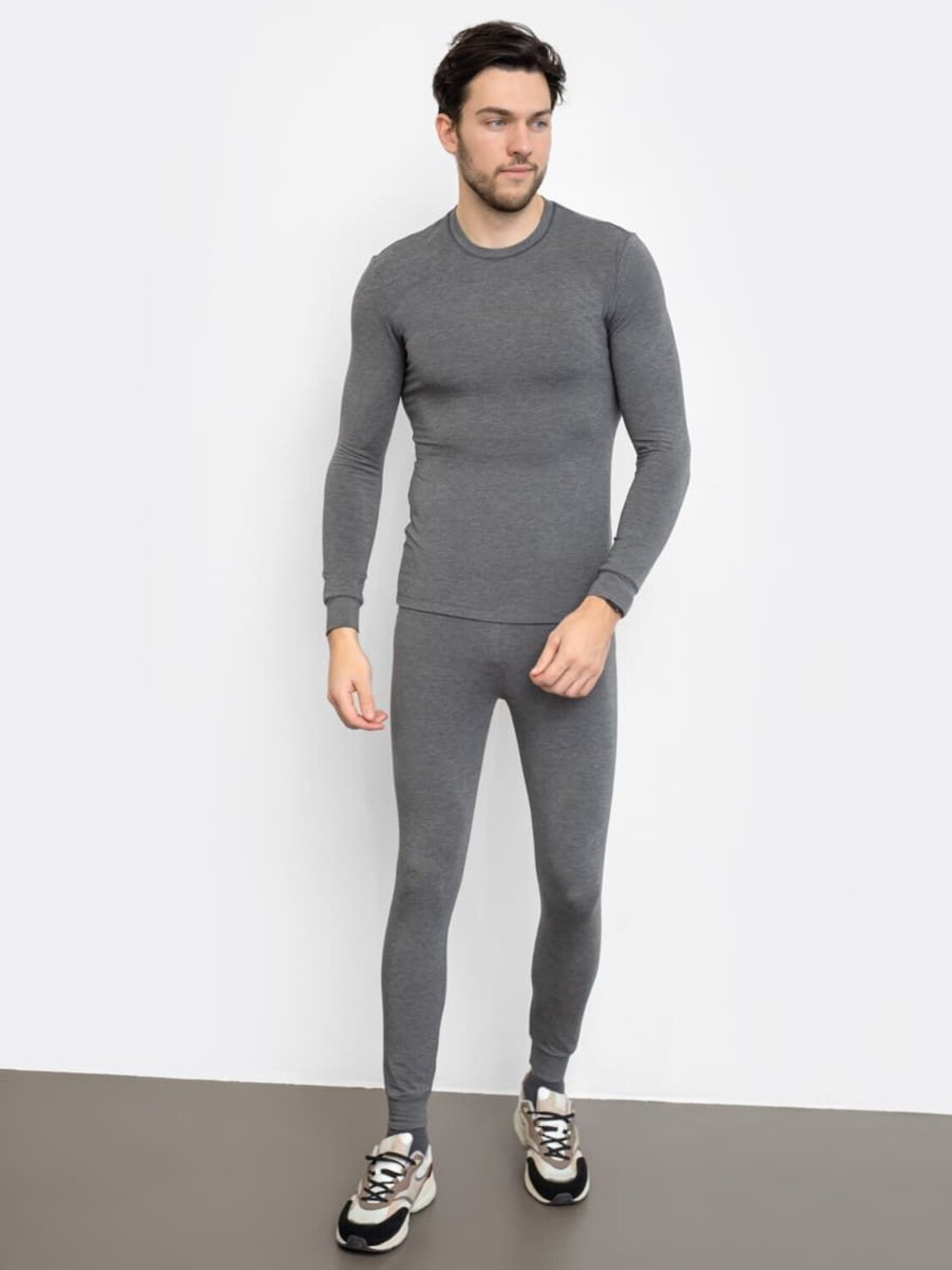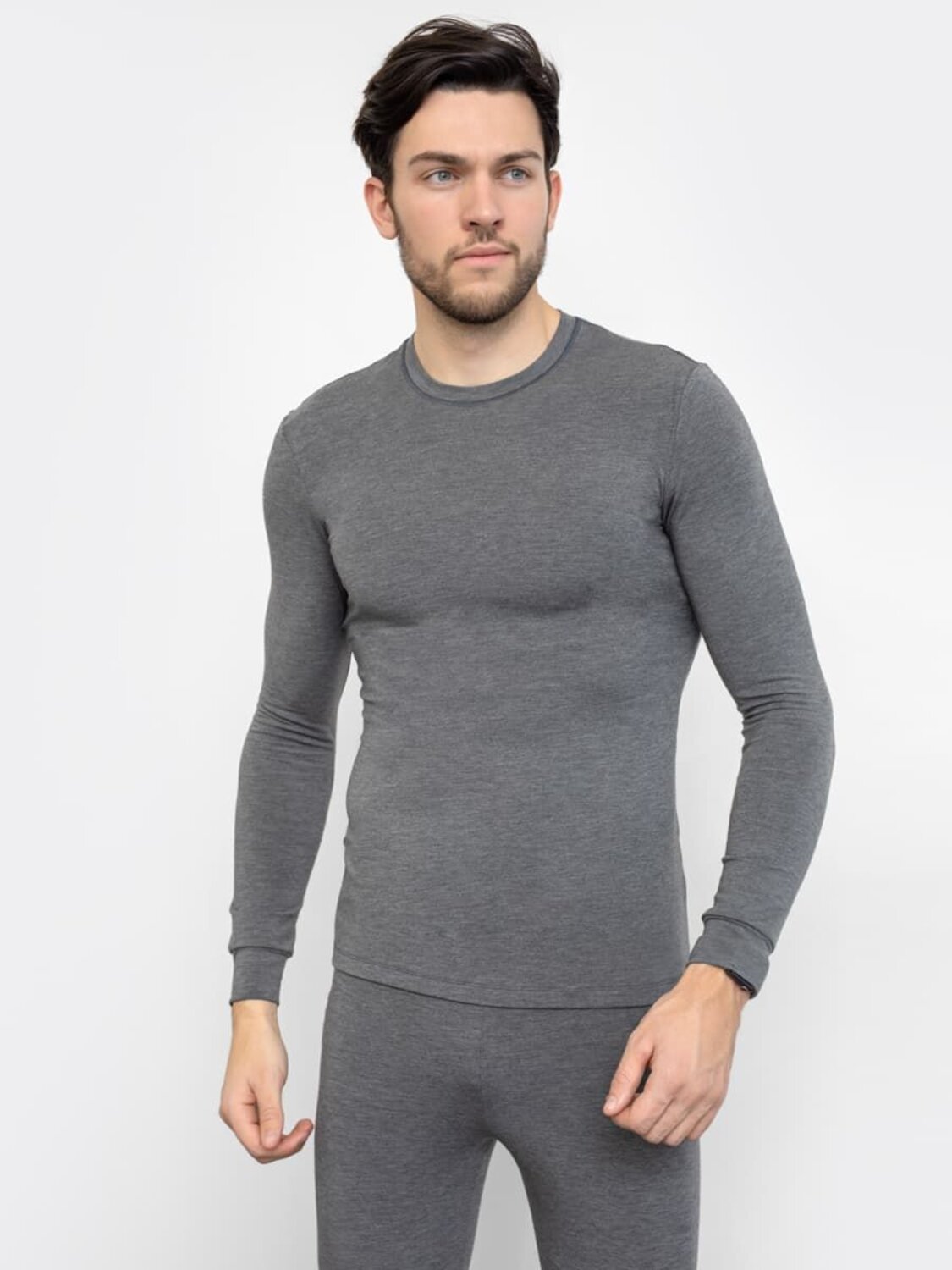 Мужской термо-компдект из полуприлегающего джемпера длиной до линии бедер и облегающих брюк. Рукава джемпера длинные, на манжетах, горловина круглая. Брюки без боковых швов, на манжетах, с эластичной тесьмой в поясе. Все швы плоские и комфортные. В состав полотна, созданного по японской технологии, входит микроакрил, который благодаря своей толщине (меньше волоса человека в 10 раз), создает своеобразные воздушные карманы между нитями – именно за счет этого свойства джемпер так хорошо согревает. Благодаря эффекту натуральной шерсти выдерживает температуры до -30 градусов Цельсия. Зиму контролируете вы!