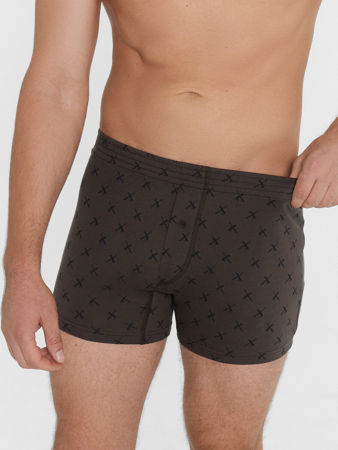 Воплощение свободы и комфорта – трусы-шорты для мужчин. Мягкие швы, гульфик с декоративной пуговицей, комфортная широкая резинка в поясе и расслабленный силуэт – всё для вашего удобства!