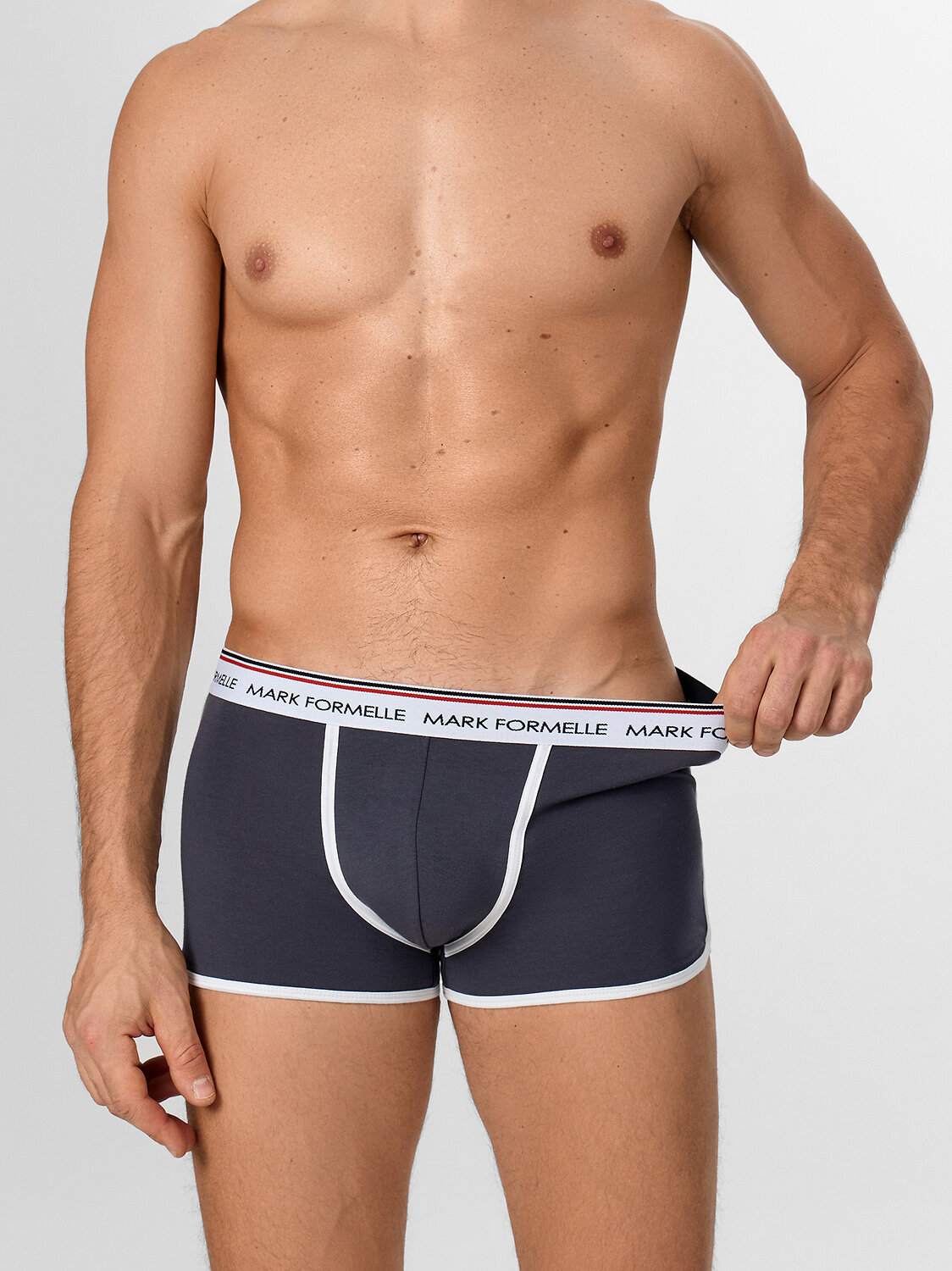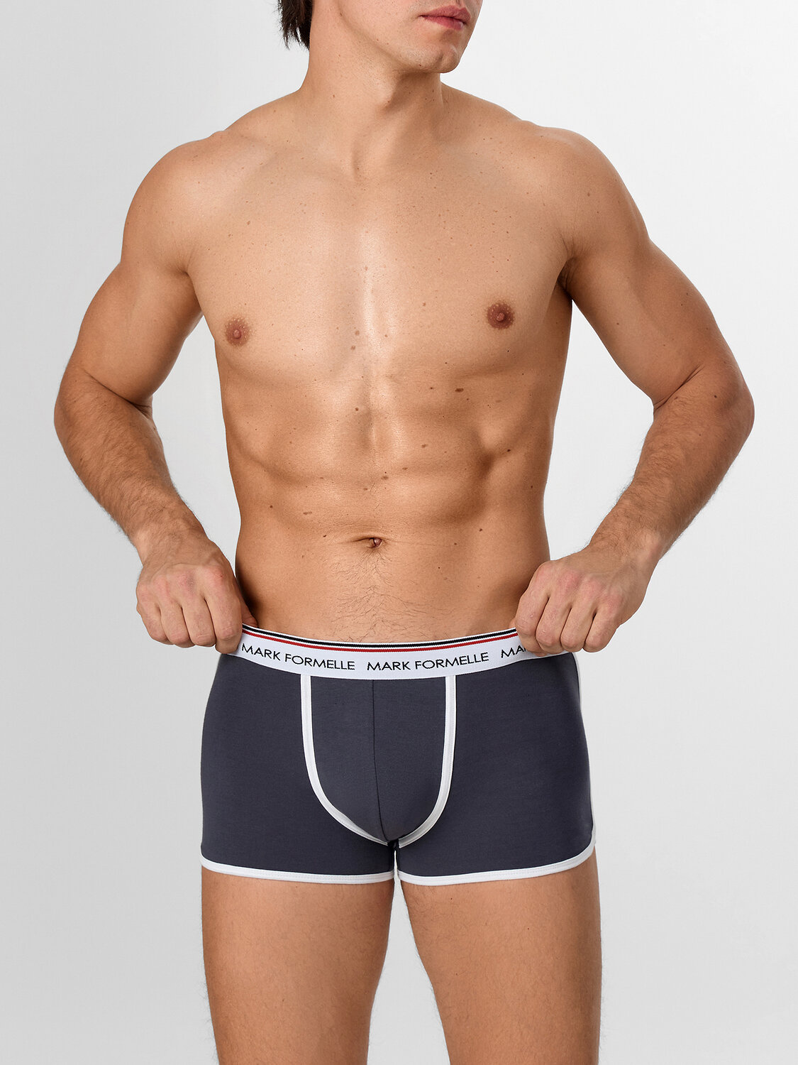 Мужские трусы-боксеры из хлопкового эластичного материала. Особенностью модели является широкая резинка в поясе, а также контрастные швы и обработка нижних срезов. Продуманная конструкция обеспечивает оптимальную поддержку, прекрасную посадку по фигуре и комфорт на протяжении всего дня.
